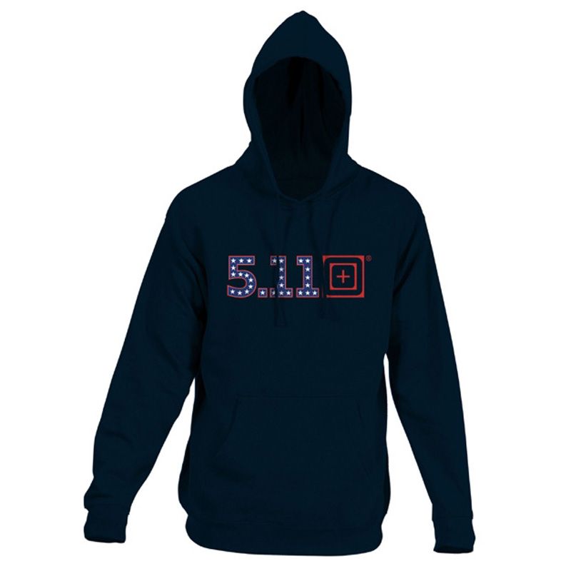 Built from a tough, durable, and breathable blend of lightweight cotton/polyester fleece, our 5.11 Independence Hoodie dons our 5.11 logo in the colors of our nation along with a traditional kangaroo-style handwarmer pocket. The lay-back hood includes an integrated draw cord to keep out wind, rain, and weather, while strengthened fabric at the waist hem and wrist cuffs ensures a perfect fit. A generous cut provides full freedom of movement without bunching or pinching, and premium 5.11 graphics remain bright and true, wash after wash.