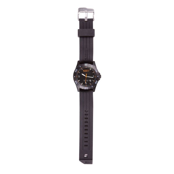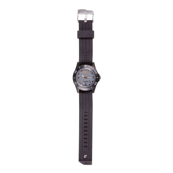 Equally at home in the boardroom or on a battlefield, the 5.11 Sentinel Watch combines reliable Swiss movement with modern engineering to produce an elegant and highly functional timepiece that stands up to the toughest environments. A scratch and chip resistant mineral glass face is treated with an anti-reflective coating to minimize glint, phosphorescent hour and minute hands enable low light operation, and a heavy duty silicon strap and buckle ensure lasting durability and secure closure. Along with offering an integrated compass the stainless steel case is water resistant to 100 meters, and a ratcheting dive bezel supports SCUBA use.