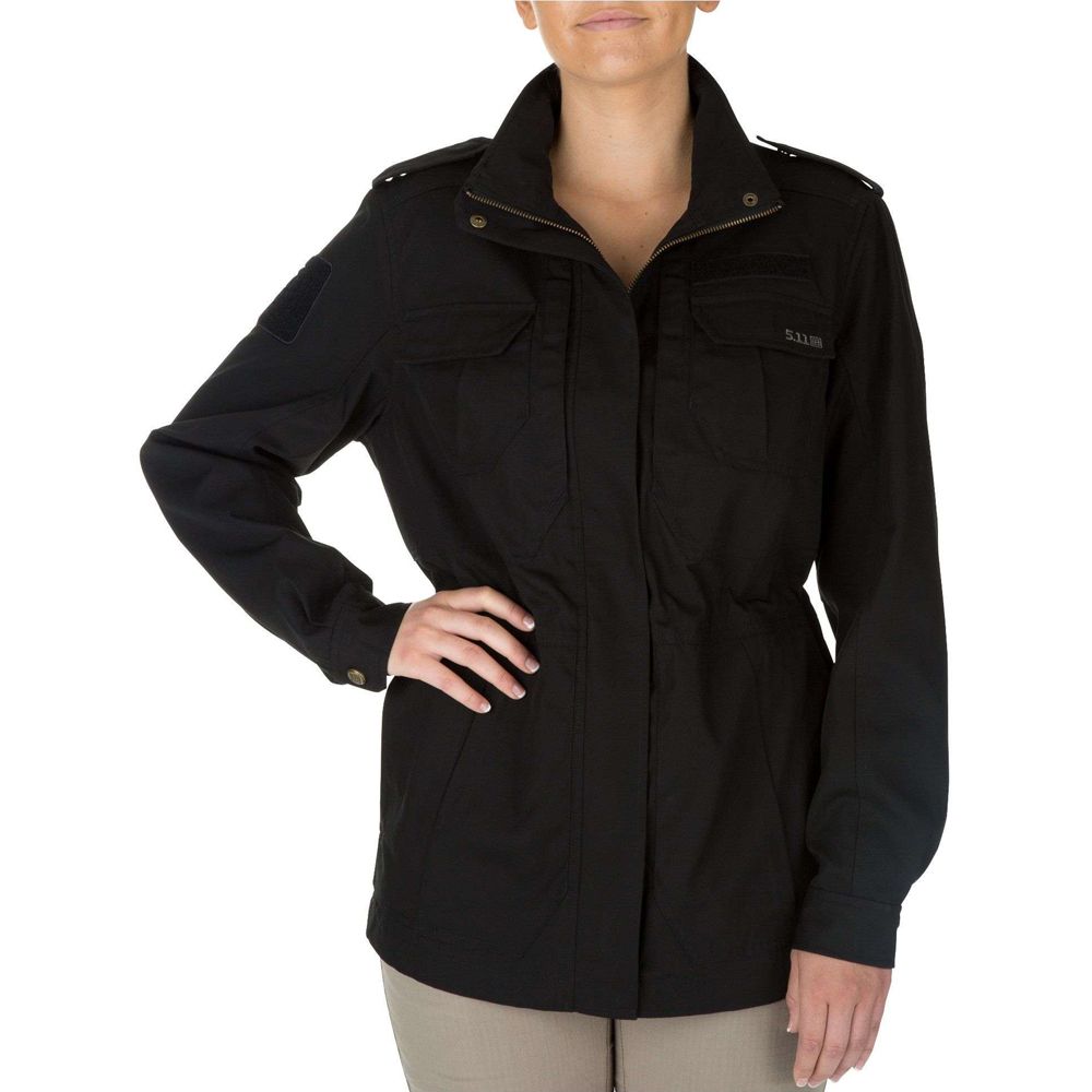 Introducing 5.11 adaptation of the popular M-65 Jacket, originally designed by the US Military in 1965 to perform on battlefields across the globe. The Women's M-65 features a feminine fit with blush-colored satin lining, yet sets the standard for women's tactical wear. It keeps you protected and ready out in the field, on the range, or simply running errands around town. Storage is ample, with 5.11's patented hidden document pockets, internal draw-cord system at the waist, shoulder epaulettes with concealed snaps, external cargo pockets and open-entry hand pockets. Crafted from TACLITE ripstop, complete with a Teflon finish, the M-65 is a versatile, light jacket, perfectly engineered to shield you from the elements, no matter the climate.