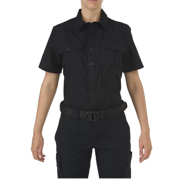 Engineered specifically for female operators, the Women's Class A 5.11 Stryke PDU Shirt takes high performance uniform wear to the next level. A superior foundation for your PDU or Dress Uniform, the Class A 5.11 Stryke PDU Shirt is crafted from our 4.84 oz. patent pending Flex-Tac mechanical stretch fabric for outstanding durability, performance, and comfort in any environment. A Teflon treatment offers enhanced resistance against stains, spills, and soil, while permanent creases and a hidden front zip closure ensure a crisp, professional appearance. Additional features include a mic pass through access and camera/radio loop enforcement kit, a zippered front placket, an epaulette kit, and a badge tab.
