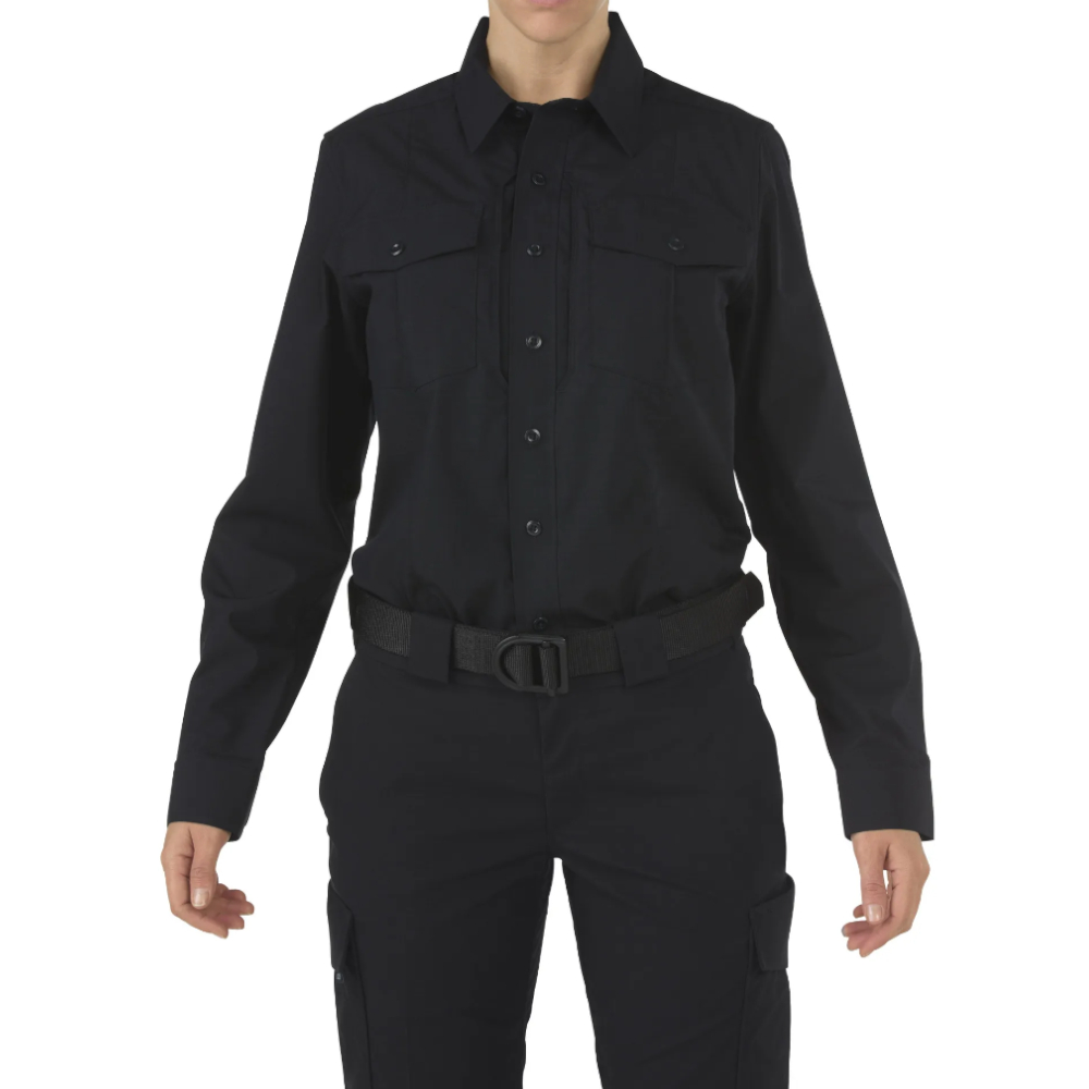 Engineered specifically for female operators, the Women's Class B 5.11 Stryke PDU Shirt takes high performance uniform wear to the next level. Designed to stand up to consistent use in harsh duty environments, the 5.11 Stryke Class B PDU Shirt is crafted from our 4.84 oz. patent pending Flex-Tac mechanical stretch fabric for outstanding durability and breathable comfort throughout your shift. A Teflon treatment offers enhanced resistance against stains, spills, and soil, sewn-in military creases and a hidden front zip closure ensure a crisp, professional appearance, and our 5.11 Hidden Document Pockets offer ample covert storage space. Additional features include a mic pass through access and camera/radio loop enforcement kit, a zippered front placket, an epaulette kit, and a badge tab.