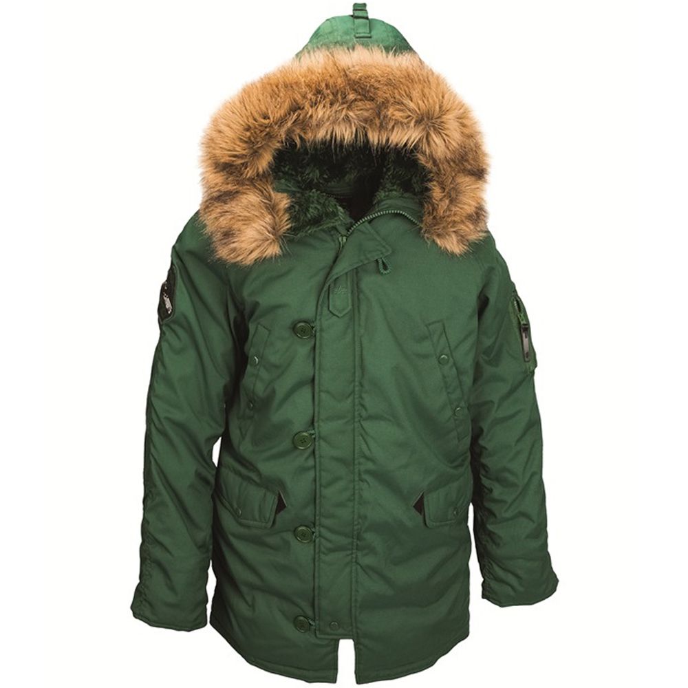 The Altitude is an N-3B inspired parka with an Oxford nylon shell and polyester twill padding and lining. This warm parka comes with a soft faux mouton lined hood, inset knit cuffs and a removable faux fur strip around the hood to protect you against the elements. Other features include drawstring waist, right arm shoulder patch, and oxygen tab.