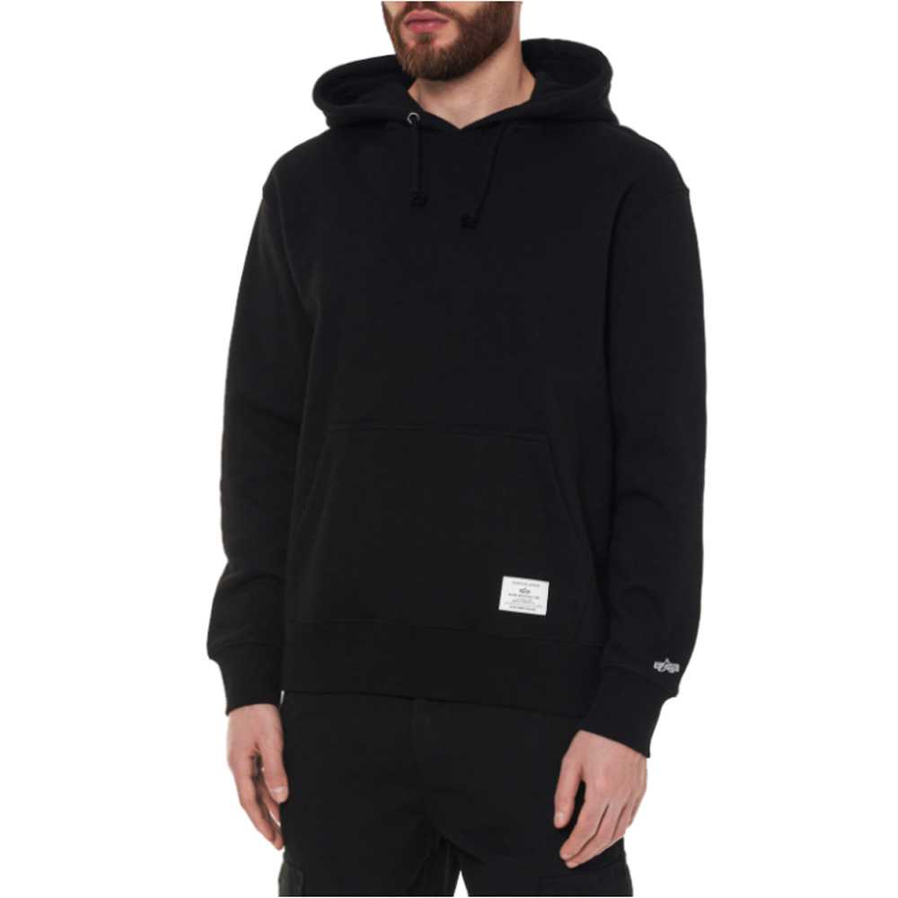 A basic, unisex hoodie with Alpha Industries logo on the sleeve. This basic hoodie is the ultimate wardrobe essential. Throw it over pj’s when lounging at home, take it on a chilly night out, or layer it under a winter jacket to stay cozy.