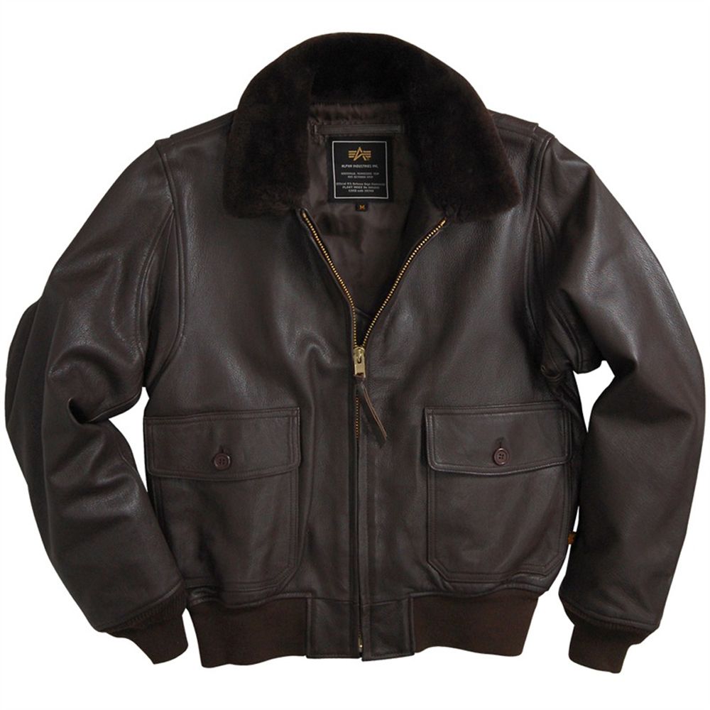 Alpha's reproduction of the coveted naval leather flying jacket featuring a genuine mouton fur collar.