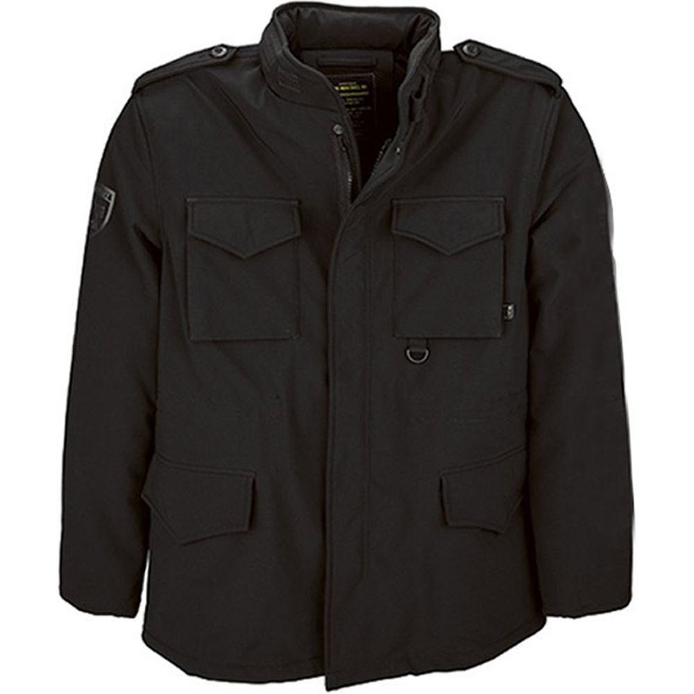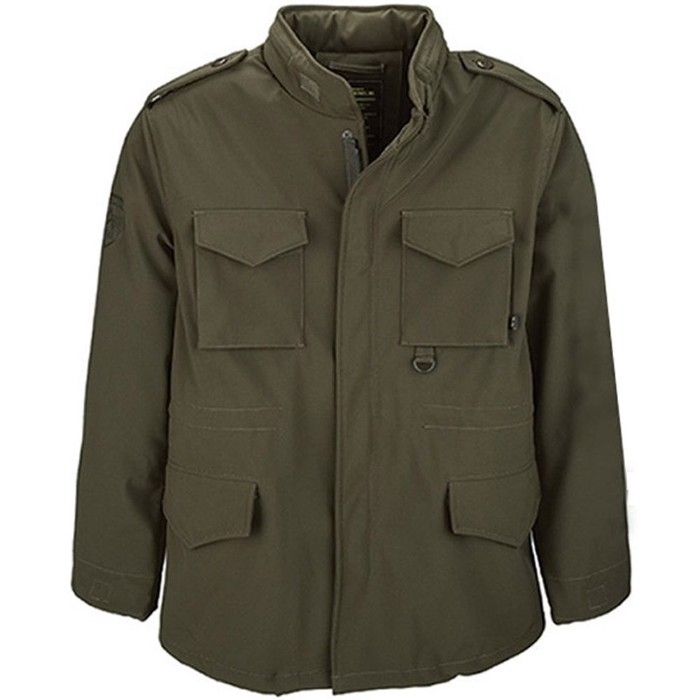 Lightweight, wind resistant soft shell version of the M-65 field coat. Features tonal Alpha gel prints on sleeves, D-ring detail, snap closure storm flap, bi-swing back, four flap pockets with snap closures, epaulets, waist and hem drawcords, thumbhole cuff, and concealed hood.
