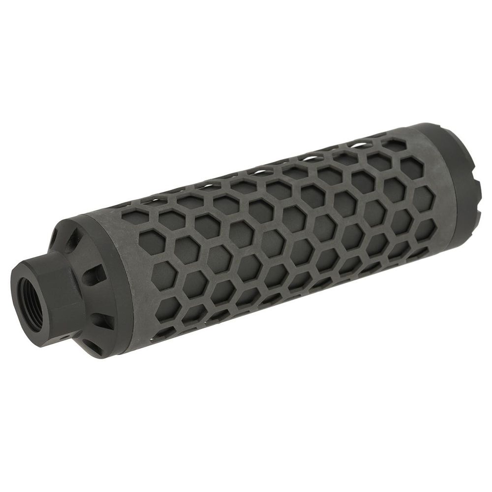 The Angel Custom HIVE mock silencer / barrel extension series is the ultimate Airsoft mock suppressor that is robust, well constructed and not only improves the look of your Airsoft rifle, but can also cover up extended inner barrels. The "HIVE" is available in a basic mock suppressor configuration or as a "Power Up" version with an integrated inner barrel that will increase both range and FPS.