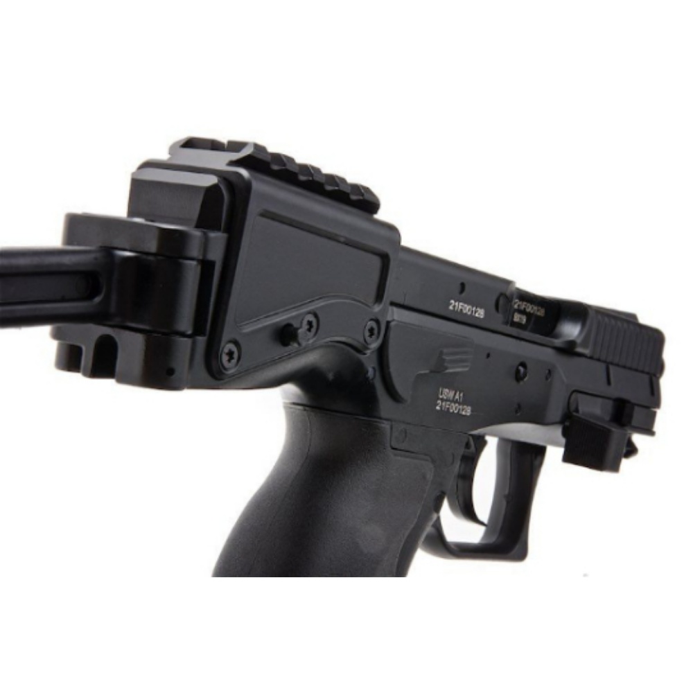 Designed to meet the changing demands of law enforcement and anti-terrorism operations the B&T USW A1 is a semi-automatic handgun able to be used accurately at longer ranges than conventional side arms due to its quick release folding stock and non-reciprocating optics mount.