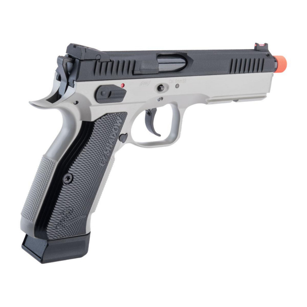 Designed by top tier competition shooters, the Shadow 2 is well balanced handgun made for speed and precision. The ASG CZ Shadow 2 airsoft pistol takes from its real steel counterpart and delivers on all the same great features. The slide is crafted out of anodised aluminium and features a less rounded and more angled design with a slight weight increase due to the wider slide. The added weight and design of the slide improves recoil management and allows greater precision shooting.