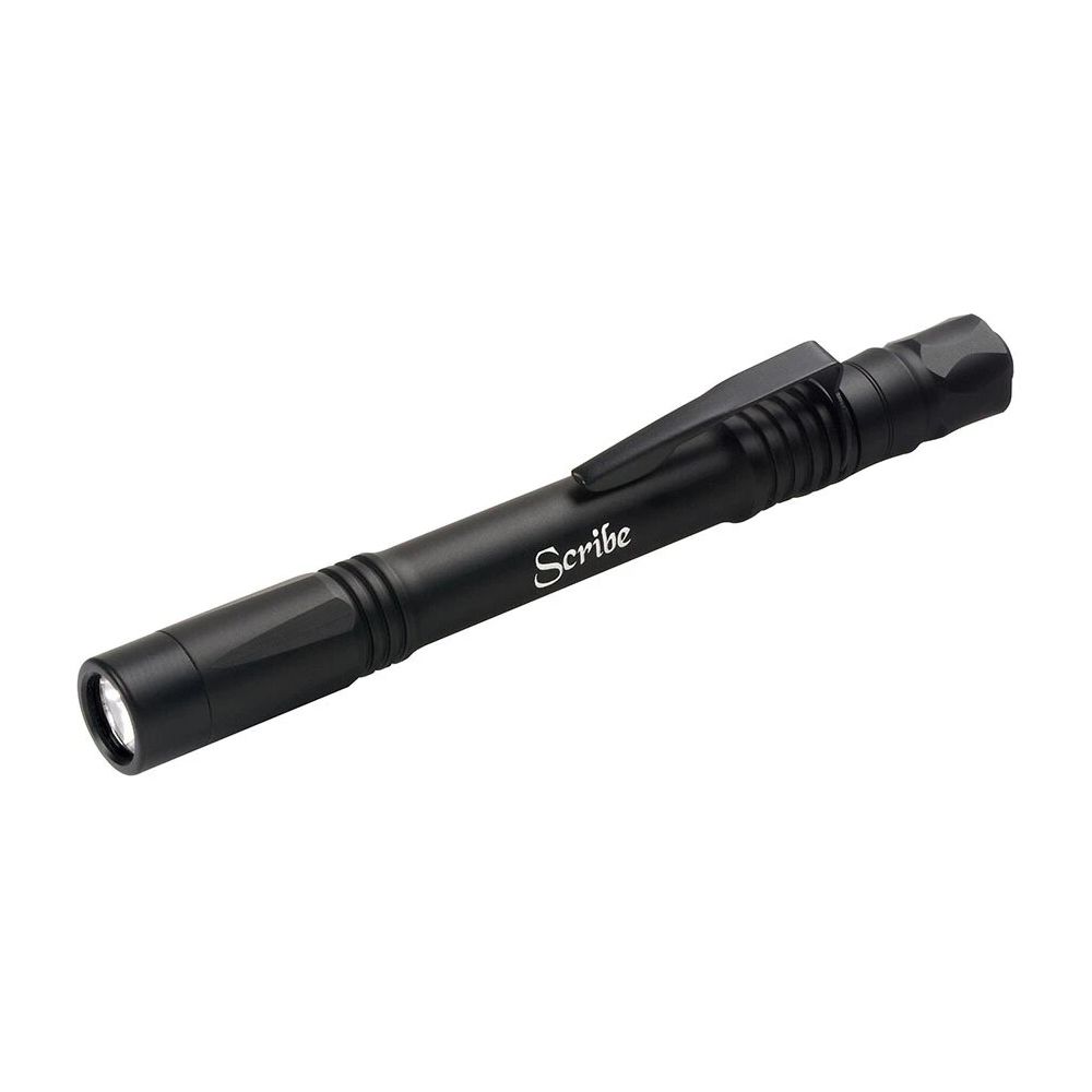 The ASP Scribe has the dimensions and feel of a fine writing instrument. It is easily carried in a suit pocket, shirt or pants. The rear button activation is instantly accessible, rapid and quiet. The Scribe is a one hand light. There are no complex settings, or elaborate activation codes. A simple push of the button provides brilliant intermittent or constant illumination. A double tap gives instant access to a low output second level. The uniqueness of the Scribe is the amount of technology that has been compressed into the form factor. Each Scribe is built to professional law enforcement standards. A precision ground glass lens is optically clear. The forged pocket clip is replaceable. A constant current circuit board drives a Cree XPG to 220 lumens as measured against the ANSI FL1 Standard. A heat management system controls the body temperature of the light. The mirror polished aluminum reflector provides a penetrating central beam with a room illuminating halo.