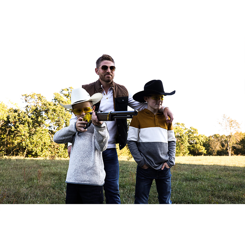 The Junior is cut from the same cloth as The 1866 with the main difference in materials being that the Junior’s pump arm is made of reinforced nylon resin. The golden receiver is made of a durable ABS plastic and gets its mirror glossy finish through electroplating. The 15" barrel is made of carbon steel and nestled inside a steel barrel shroud.