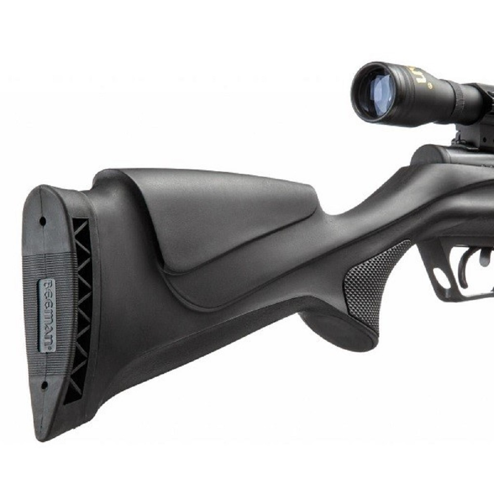 The advanced technology of the gas ram system uses compressed gas in a sealed, self-contained unit that is designed to replace the mainspring in a conventional air rifle. The air rifles cock like any other barrel-cocking airgun, but the single cocking stroke compresses a cylinder of gas instead of a mainspring. When the trigger is pulled, the compressed gas expands and drives the piston forward. The main advantage in a gas ram air rifle and a real advantage to hunters is the tireless gas ram power plant that, unlike a steel mainspring, can never take a set or tire with age. Another advantage is the shorter lock time, which aids in field accuracy, as there is less time for the shooter to “pull” off target. The air rifle’s reliable performance in any weather, smoother cocking effort, and more consistent power and velocities make for a truly exceptional airgun.