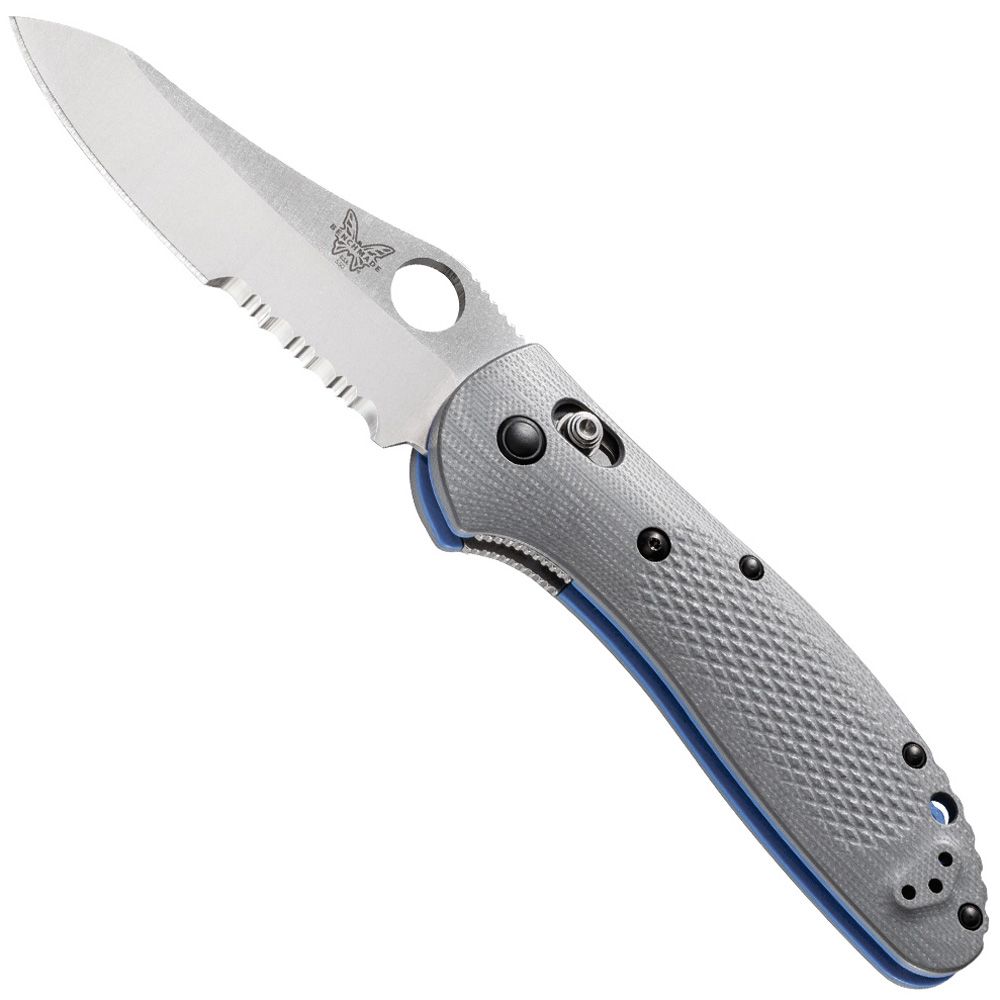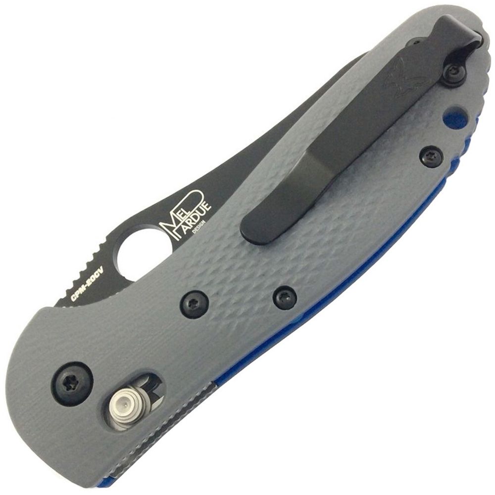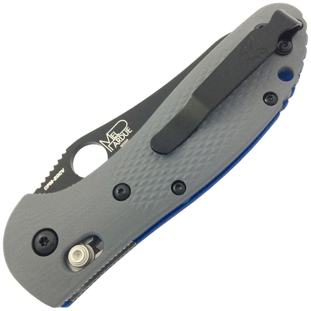 Specifications: Blade: EdgePlain Blade Finish/Color: Satin Blade Steel: CPM-20CV (59-61HRC) Blade Style/Shape: Sheepsfoot Handle Material: G10 Blade Finish: Finish Satin Handle Material: G10(Gray) Designer: Pardue Mechanism: AXIS® Action: Manual-opening Blade Length: 3.45" (8.76cm) Blade Thickness: 0.115" (2.92mm) Open Length: 8.07" (20.50cm) Closed Length: 4.62" (11.73cm) Handle Thickness: 0.61" (15.49mm) Weight: 4.13oz. (117.08g) The Griptilian with G10! The upgraded CPM-20CV blade steel improves edge performance and the layered gray and blue G10 enhances the look and feel. And, of course, integral grip texture offers the traction that is quintessential to the Grip family. Customize the 550-1 Griptilian plain sheepsfoot blade with Benchmade. Made in USA.