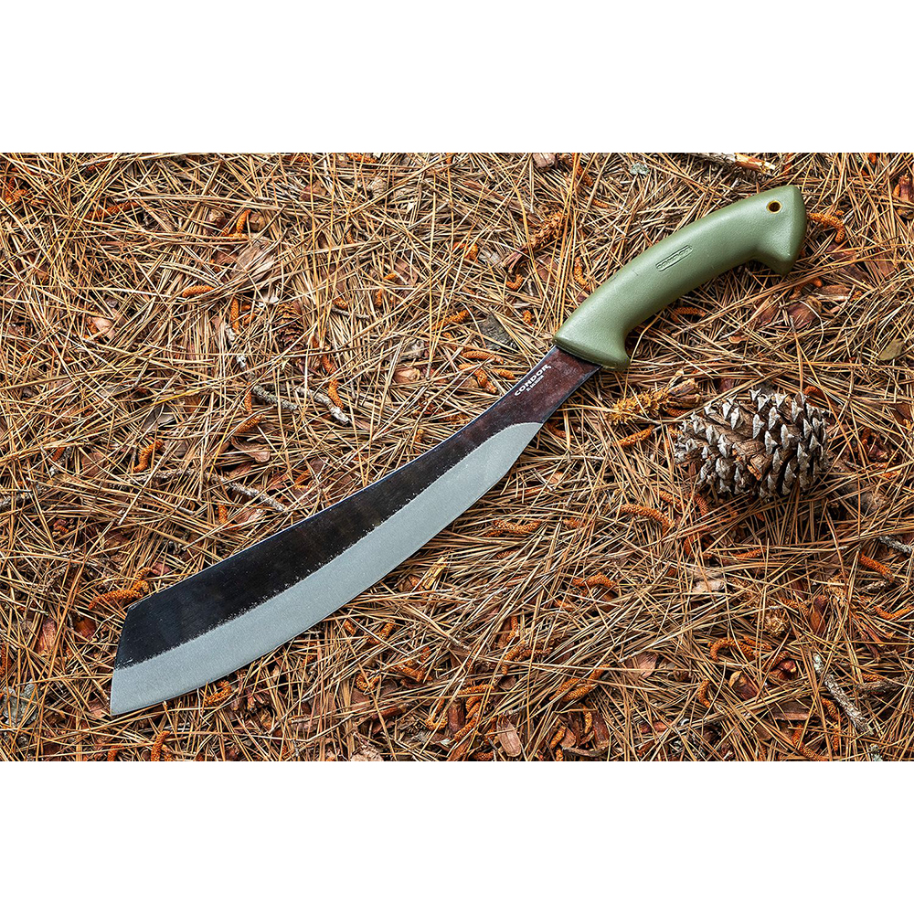 Blending traditional design with modern materials, the Condor Bushcraft Parang Machete is built for performance in rugged outdoor environments. The 13-inch 1075 high carbon steel blade features a convex grind for excellent chopping power and durability, while its natural finish adds a raw, functional aesthetic.