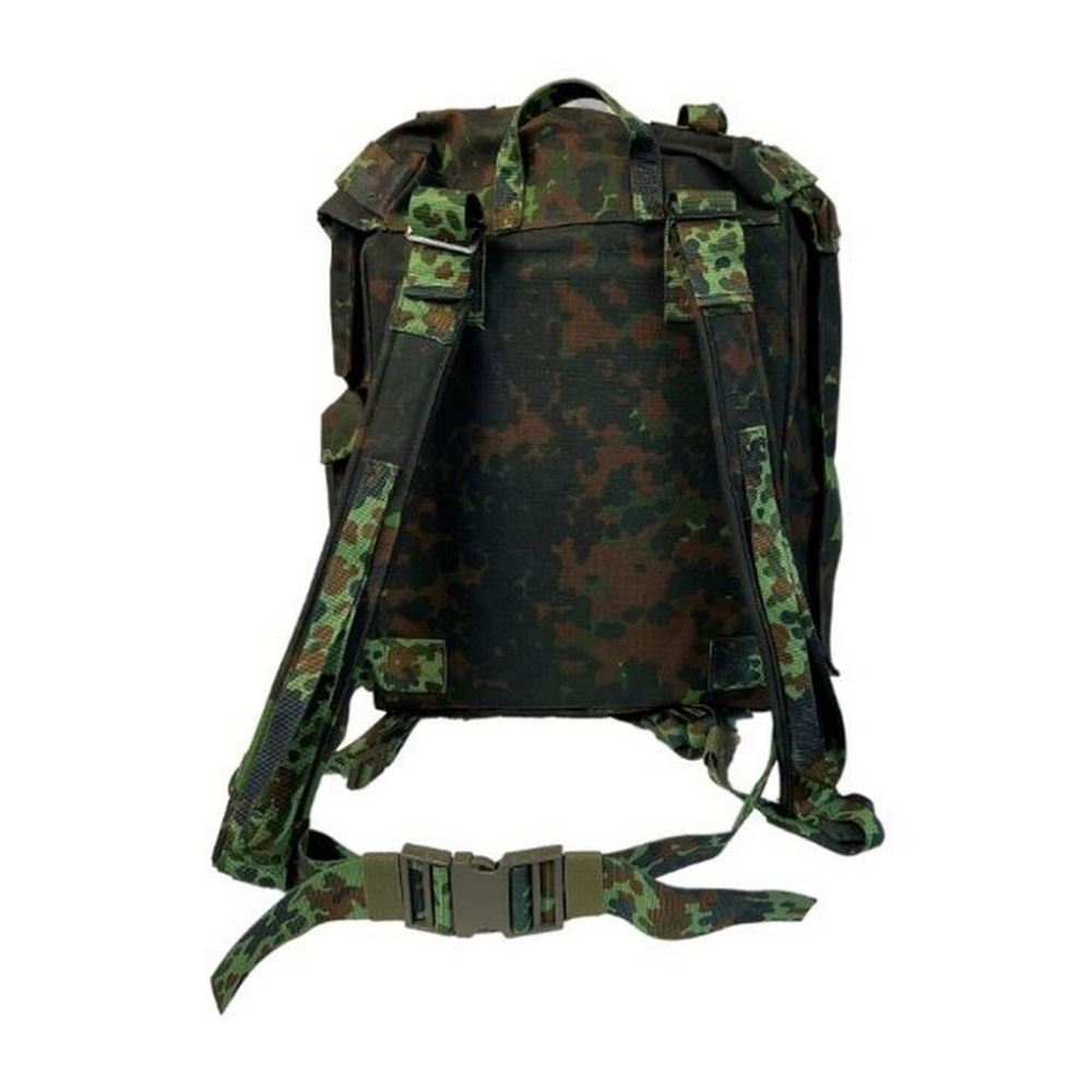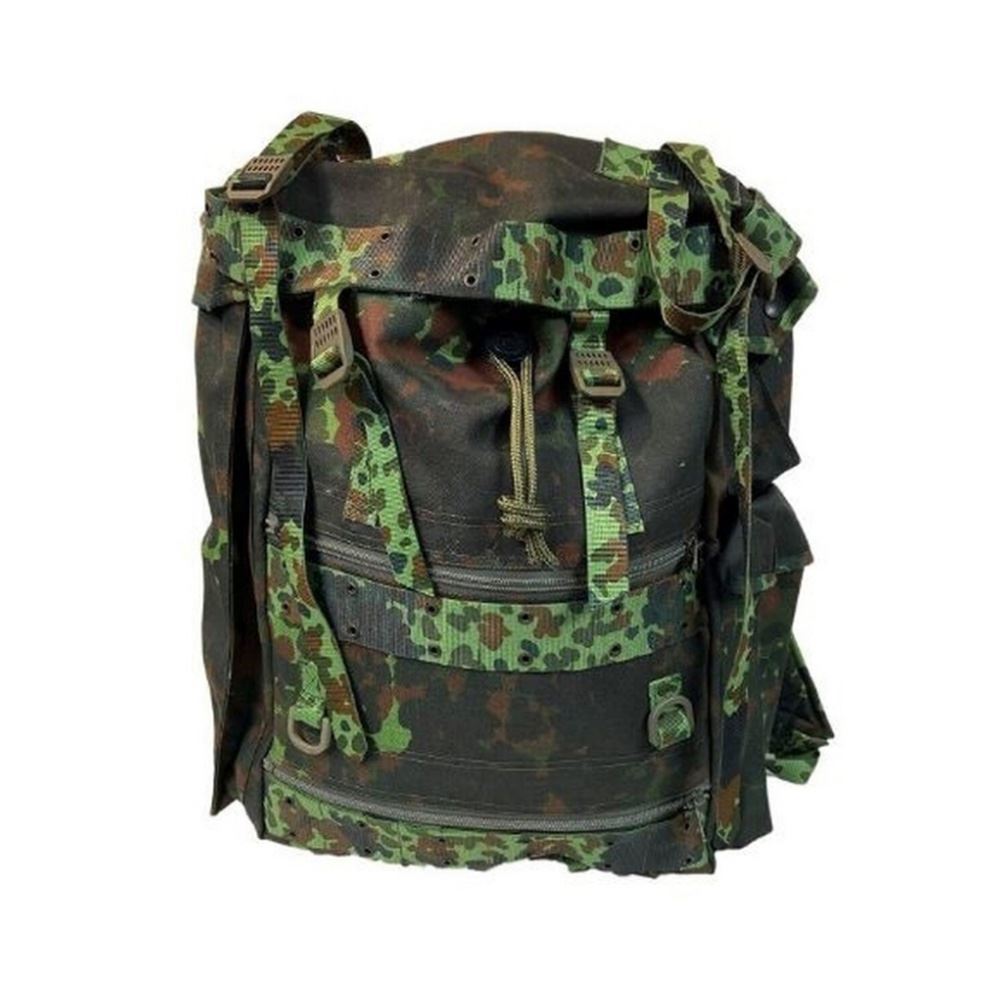 This is a an excellent pack and also kind of interesting, historically. For a brief period the Belgian military decided to issue flecktarn camo gear to soldiers. The public didn't like seeing their troops in "German" camo, so that was soon corrected. These packs are in used/excellent condition. Yours may have a dusty rub mark here or there or a scratch or scuff on the buckle on the belly strap. It is also possible that you may find some kind of personalization or other "proof of authenticity." They are in excellent condition and made of heavy duty canvas. It is good to last many, many years on the trail. Take a look at the pics to get an idea of the features. There are more than I care to type out right now. Chief among them are zippers that allow you to access the main pack compartment from the middle and bottom, so you don't have to get at everything from top to bottom all the time.