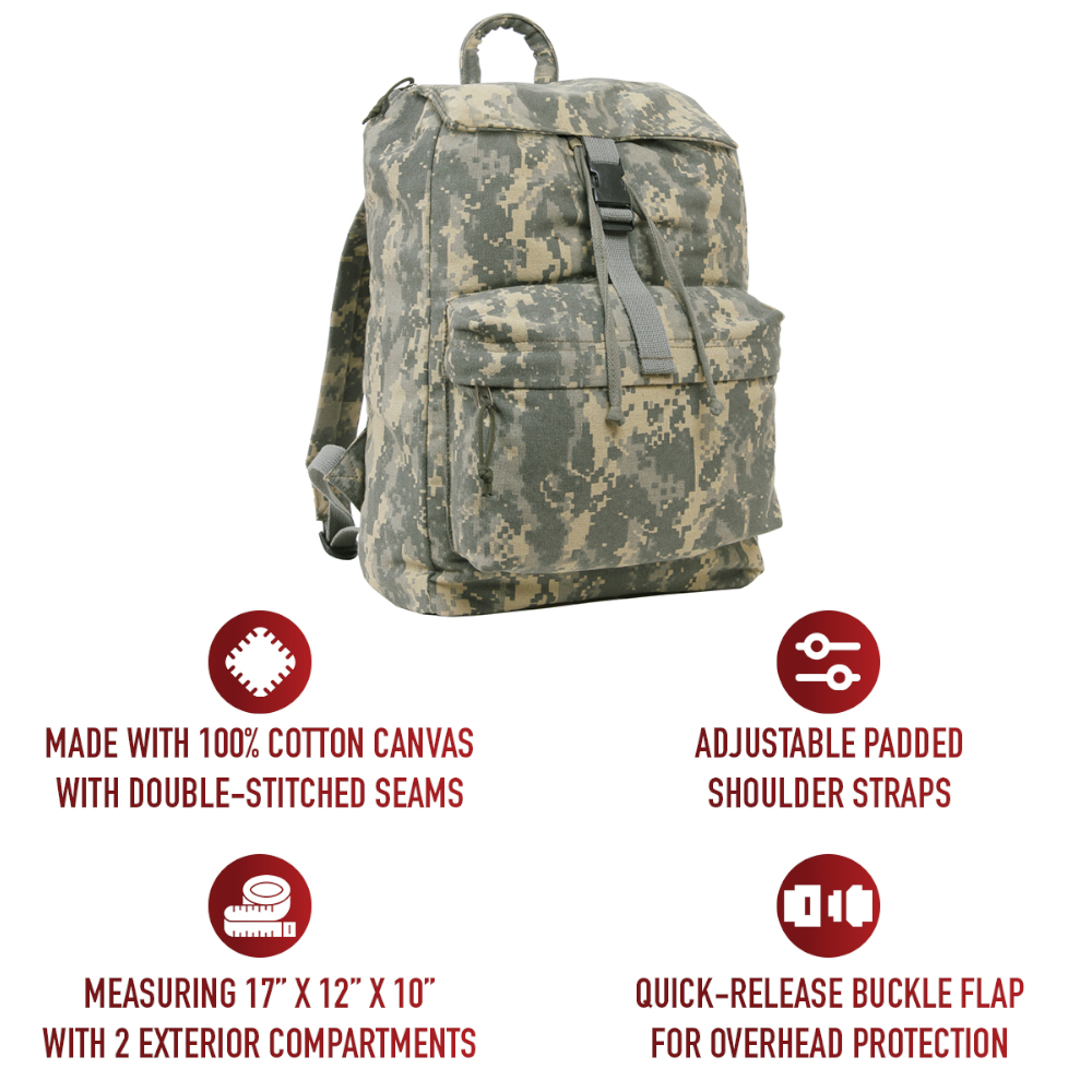 Designed To Withstand The Rigors Of The Outdoors, This Canvas Backpack by Ultra Force Is Made From Top-Grade Heavyweight Canvas, Offering Unmatched Strength, Water Resistance, And Durability. With A Spacious 34L Capacity, It Features A Large Main Compartment And Two Exterior Zipper Pockets For Easy Organization Of Clothing, Water Bottles, Trail Snacks, And Travel Essentials. The Quick-Release Buckle Flap And Drawstring Closure Keep Your Gear Secure, While The Adjustable Padded Shoulder Straps And Sturdy Top Handle Provide Comfort And Versatility. Whether You’re On A Full-Day Hike, A Weekend Getaway, Or A Daily Commute, This Backpack Is Built To Handle It All.