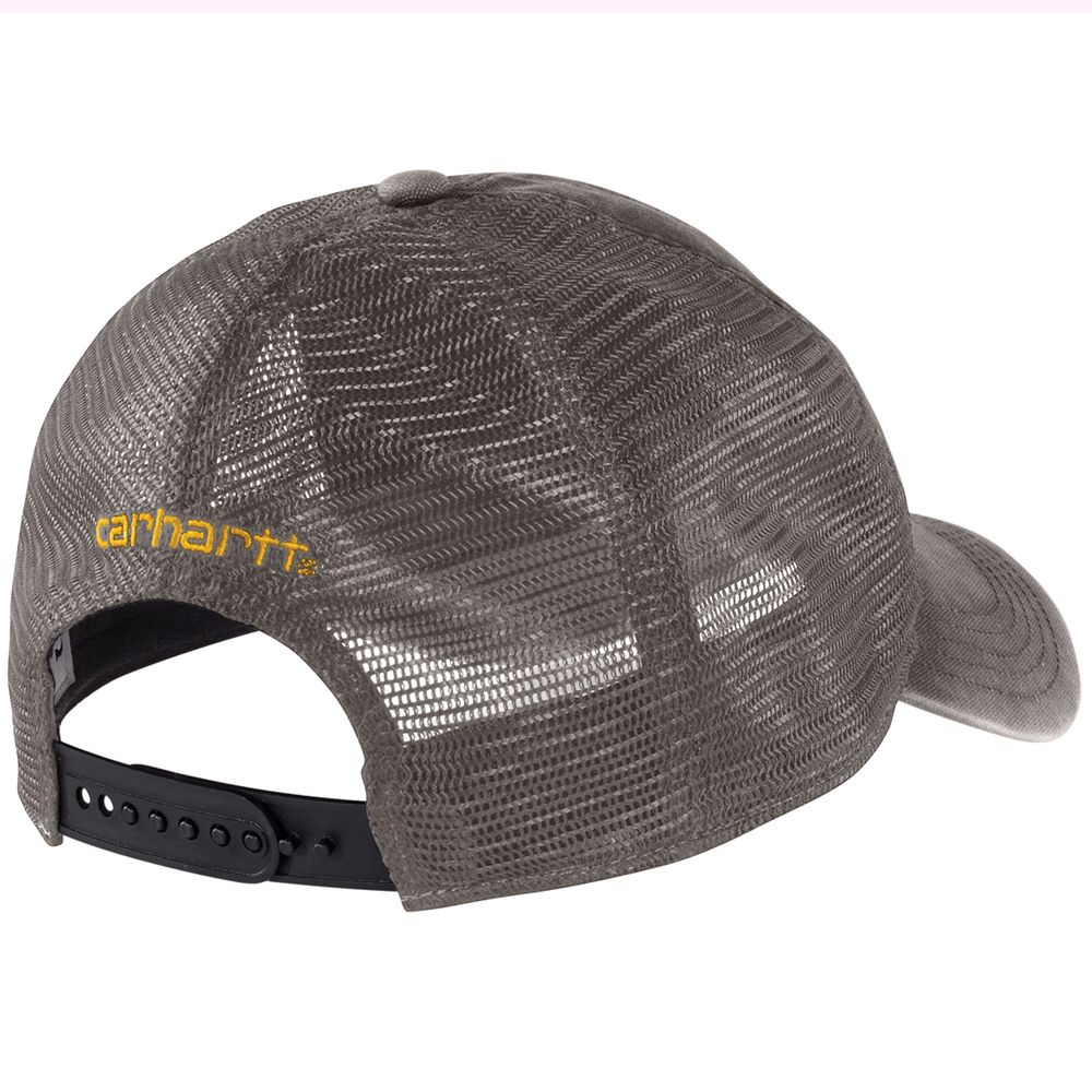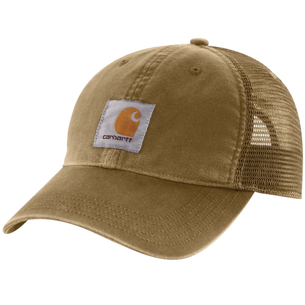 The Carhartt Men's Buffalo Cap is made of 100% duck cotton with a polyester mesh back and a COOLMAX® sweatband to help keep you cool and comfortable on warm days. The cap features a pre-curved visor, a Carhartt logo on the front, and a plastic back closure for an adjustable fit.