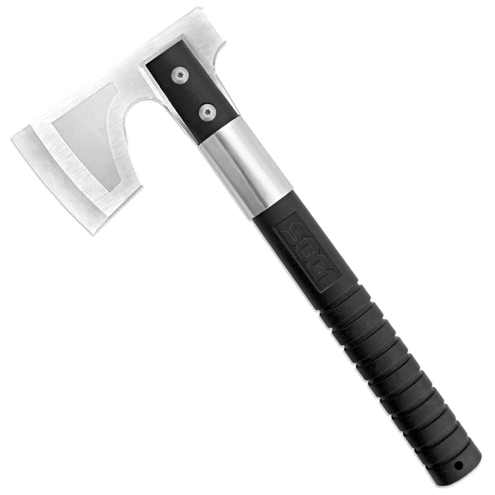 Make short work of your camping duties thanks to this SOG Camp Axe. Its textured Glass-Reinforced Nylon (GRN) handle supports a stainless steel axe head. Its small, compact size makes it perfect to pack away in a bug-out or emergency bag.