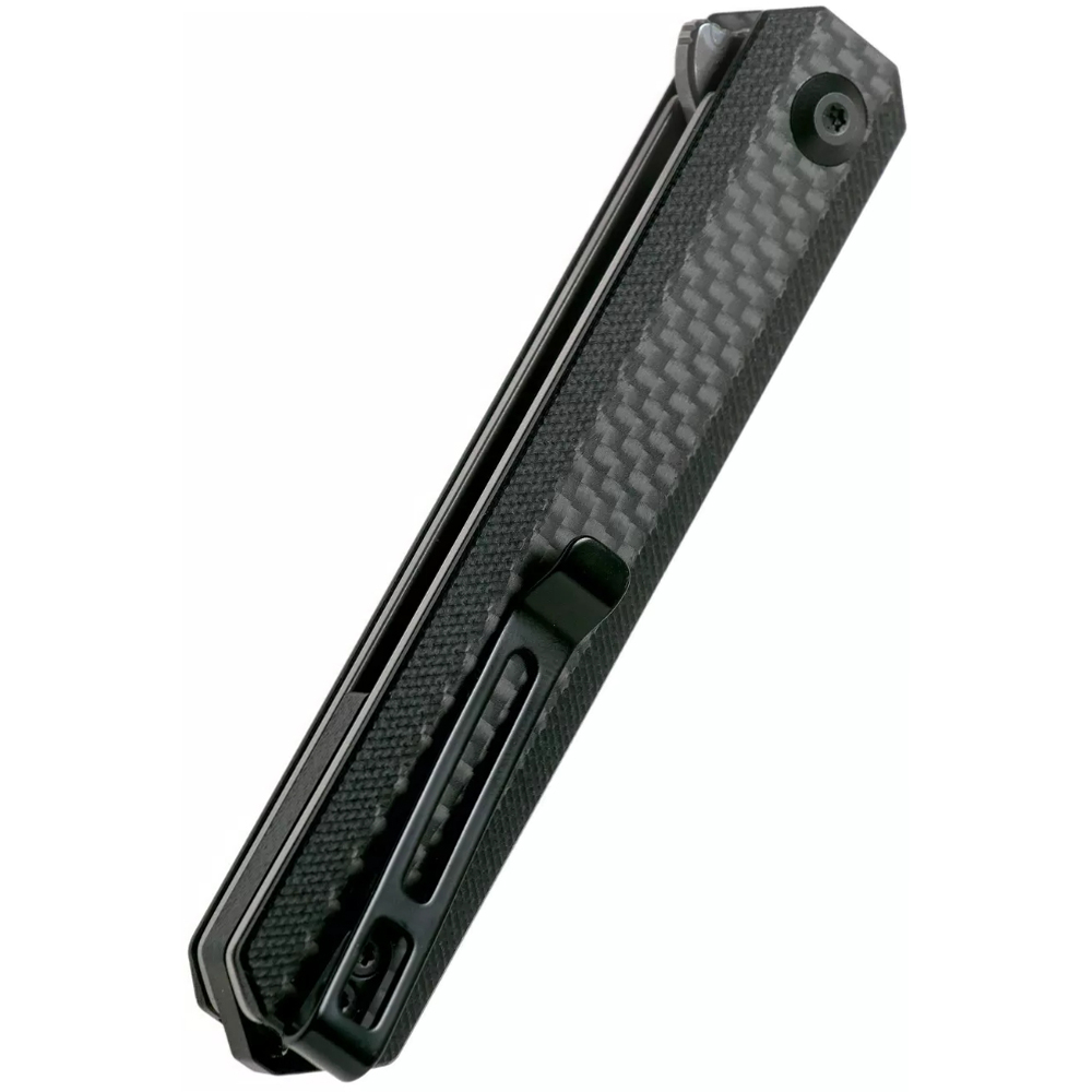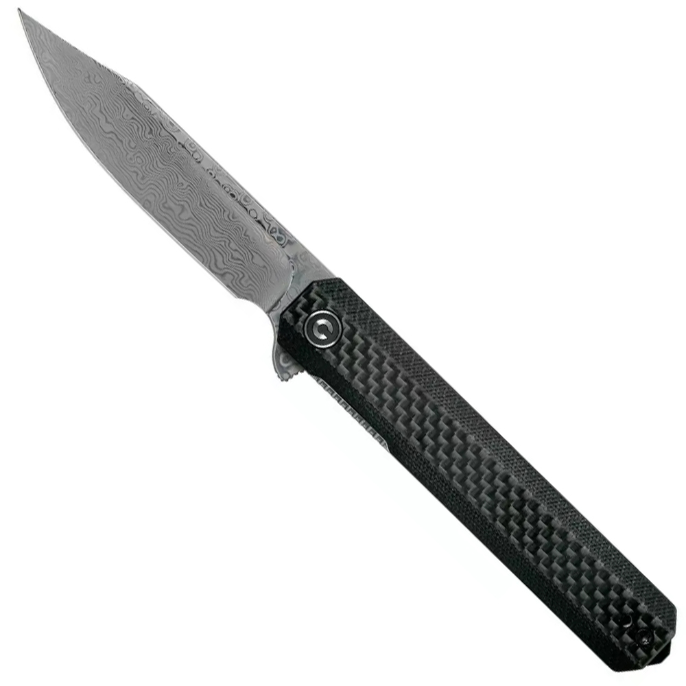 The 917 Chronic is an EDC gentleman's knife with a slim and petite profile. The clip point blade on this version is made from gorgeous Damascus steel and deploys quickly and easily thanks to the caged steel bearings in the pivot. This gives it that satisfying snap during deployment that CIVIVI knives excel at. The narrow handles are made from subtly textured G10 with a twill carbon fiber overlay that provides a firm grip despite the slim shape. The knife comes with a reversible stainless steel pocket clip that, when combines with the shape of the knife, makes it so that you will hardly notice the knife in your pocket.