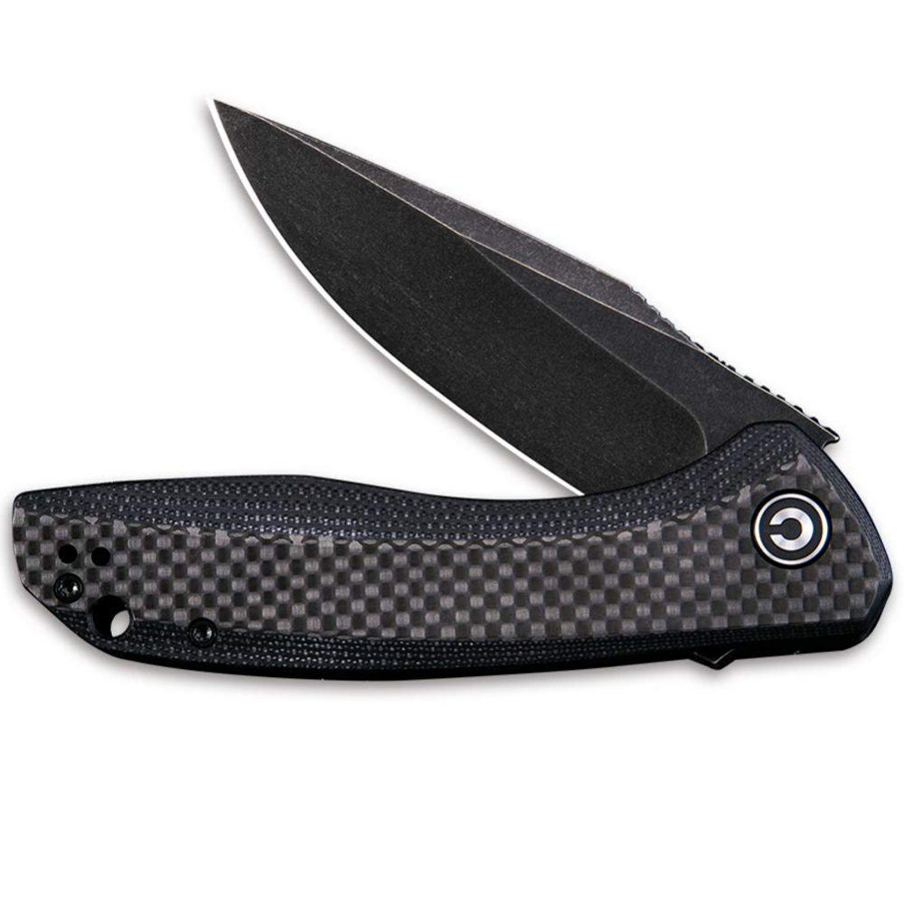 The Baklash Linerlock has the same dependability the Civivi brand knives are known for. A tough black stonewashed 9Cr18MoV blade in combination with a carbon fiber handle simply makes this knife unbeatable in its genre giving it a really nice grip and a much superior edge retention. The knife also comes with reversible pocket clip that makes transportation very convenient and discreet for everybody, perfect for your EDC.