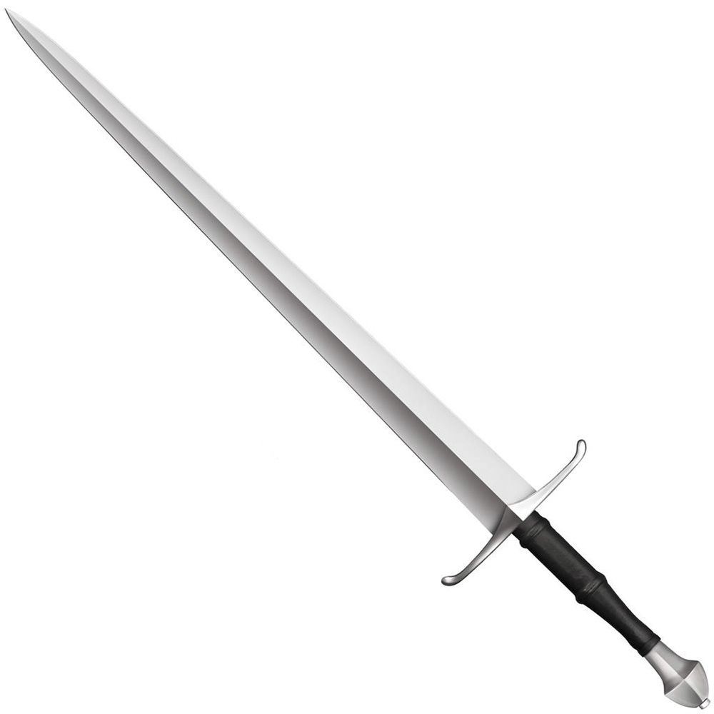 The thin, wide, double edged blade is hand forged from 1050 high carbon steel with a hard spring temper and is delivered fully sharpened and polished. For maximum control and leverage, when attempting big cutting feats, Competition Cutting Sword comes with a substantial leather covered wood handle that will accommodate one or both hands.