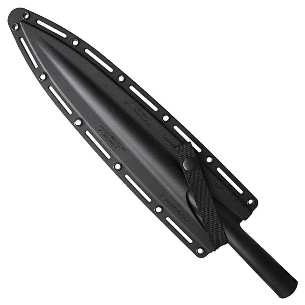 The spear is one of man’s oldest, reliable weapons. Early examples were no more than sticks or poles with fire hardened points, but as man learned how to knap flint cast bronze and forge metals, spears quickly evolved. With modern cold-forging - a process pioneered by Cold Steel - we are now able to offer high performance modern spears at affordable prices. Our Zulu Assegai [as-uh-gahy] are made from SK-5 medium carbon steel, heat treated and drawn to a tough spring temper, and designed to flex or bend under impact forces rather than breaking or shattering. The Assegai blade is available with a choice of two different premium American Ash shafts (A shorter model for thrusting or a full length throwing shaft), and comes complete with a durable Secure-Ex® sheath.