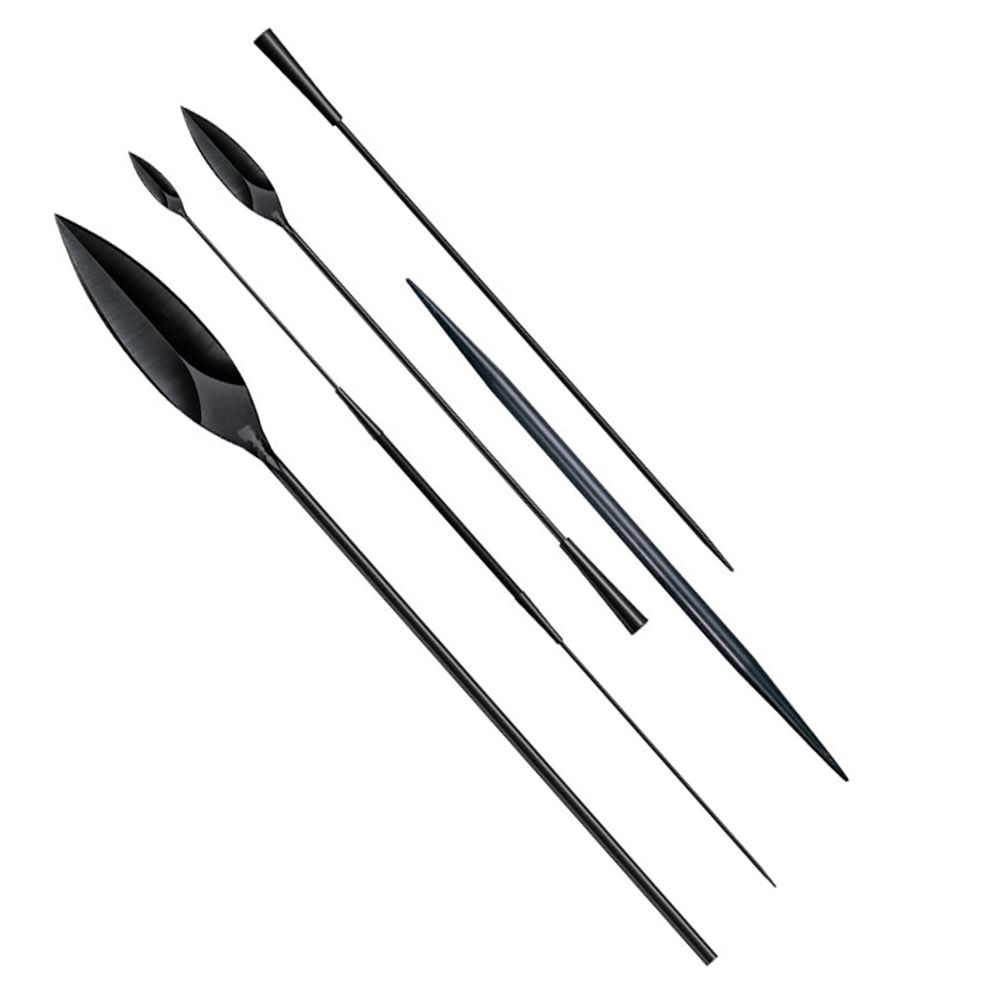 The Samburu tribe who inhabit Kenya's rugged northern frontier are a tall, lean people who eke out a living as semi-nomadic herders of sheep, goats, donkeys, camels and cattle. The warriors of the tribe known as "Lmurran" are particularly impressive, as they never cut their long braided hair and decorate their faces and torsos in beautifully intricate patterns using a cosmetic mixture made from animal fat and red ochre. Since their flocks and herds are constantly menaced by predators and subject to raids by lawless "Shiftas" (bandits) from Somalia, they seldom venture outside their "Kraals" (a kind of makeshift hut) without being thoroughly armed. In fact, no warrior worthy of his name would think of being caught without his spears. You see, the Samburu warrior's seven foot long throwing spear is the most advanced, state of the art spear of its type on the planet. With this extraordinary spear, warriors routinely dispatch marauding leopards, lions and even firearm toting bandits at unheard of distances. Each of our Samburu spears break down into three components: The first is the spear head itself, permanently welded to a thick steel shaft. Second is the counter balancing butt spike also known as the shoe. This is used as an alternative point for practice throwing, preserving the actual spear blade itself for more serious work. Third is the black, hardwood handle with a double taper connecting the head and shoe. The Samburu spears come unassembled for ease of transportation. All you have to do is fit the blade and butt spike tightly to the handle and attach them with the provided retaining screws. They come complete with a Secure-Ex® sheath. These spears could be described as the 300 Winchester Magnum of the spear world. They can be used at long range, fly straight, have a flat trajectory, hit hard and penetrate deep. Like the 300 Win Mag, they can be used to take any animal in North America. NOTE: We've made our Samburu spears as tough as possible. However, if you bend your spear shaft or "shoe" (butt spike), it can be easily straightened in a vise or with a hammer, and the tough hickory handle of your spear can eventually break, so please be prepared to replace it.