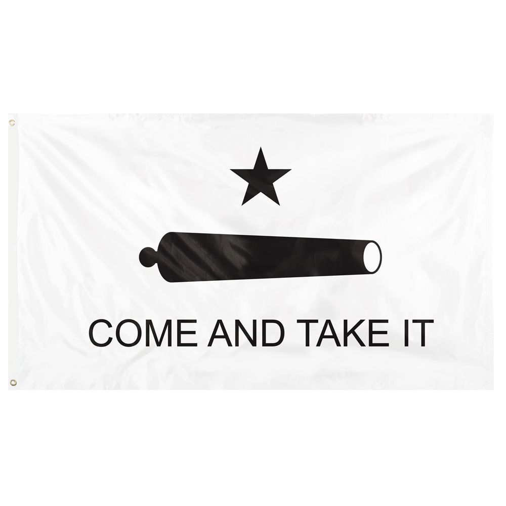 Show your unwavering spirit of resistance with the Come And Take It Flag, a bold piece of American history immortalized on fabric. This iconic flag dates back to the American Revolution and symbolizes the determination to defend one’s rights and property at all costs. Made from 100% polyester, it features the famous phrase "Come And Take It" along with the classic imagery—perfect for patriotic displays, historical reenactments, or personal expression. Whether indoors or out, it adds historical significance and fearless energy to any space.
