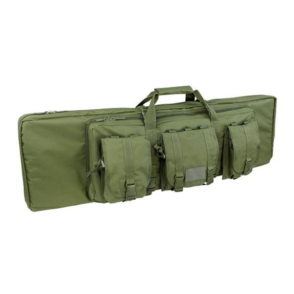 The Condor double rifle cases are designed to carry two primary weapon, with the addition 26" compartment for pistol, optic, SMG or other accessories. It comes with 3 modular pouches that combines to hold up to 14 M4 magazines. The padded divider separates the two rifles and the entire case is fully padded for maximum protection. The double rifle case are available in 36" (151) and 42" (152).