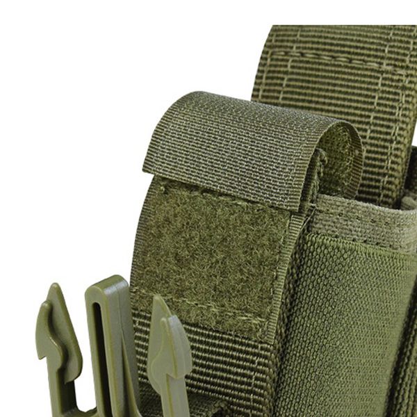 Keep your stun grenade close at hand with the Condor Flashbang MOLLE Pouch. This black pouch features a quick release buckle, adjustable front closure flap, and an elastic placeholder for securing the grenade. Holds one flashbang.