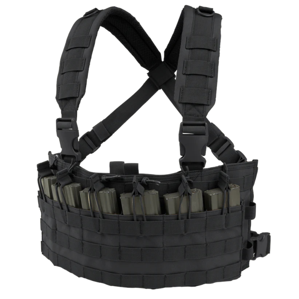 The Condor Rapid Assault Chest Rig is designed for Operators needing quick access to Ammunition. It features Six Open-Top M4 Mag Pouches for fast reloads and Swivi-Lockster Release Buckles for rapid on and off.