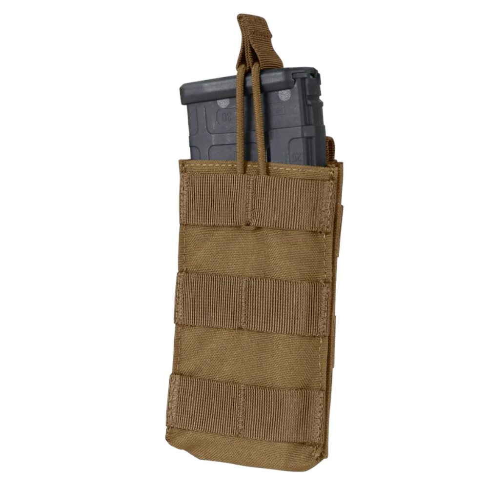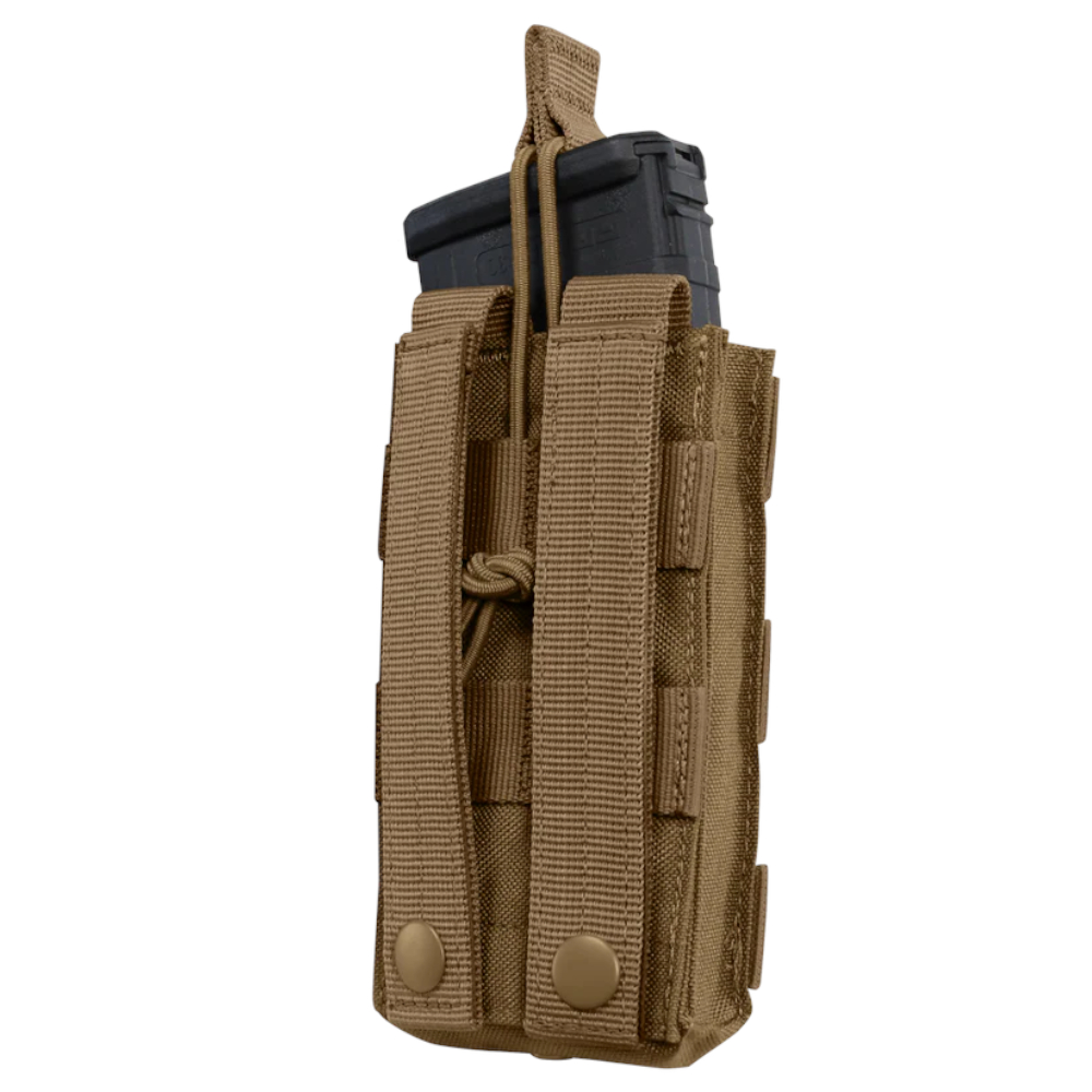 The Condor Single Open-Top M4 Pouch will keep your mags cozy and comfortable. The bungee cord adjusts for a customized and secure fit, ensuring that mags will not get lost on the range. The open-top design makes mags accessible and the MOLLE straps attach to tactical vests and belts for easy carry. Multicam pattern was designed for the U.S. Army to wear in varied environments. Measures 102 mm (4 inches) x 89 mm (3.5 inches) x 64 mm (2.5 inches).