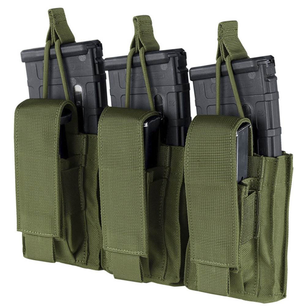 Utilize the Condor Gen II Triple Kangaroo Mag Pouch as a versatile addition to your Loadout. Developed based on feedback from LE/MIL Personnel, this Mag Pouch features an upgraded Open-Top Design for high-speed Reloading and Storage. It accommodates both AR/M4 and Pistol Magazines in one Modular Attachment.
