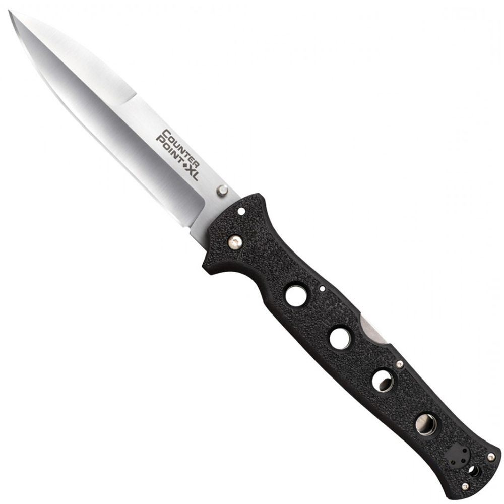 We spent years exploring high-end boot knives, and now we’ve applied that knowledge to a folding knife – the Cold Steel Counter Point. Their stiletto-inspired spear point blades have a distinctively pronounced false edge and a lustrous satin finish, combining to make a blade that not only looks great, but delivers a show stopping performance! Made from Japanese AUS10A Steel, the Counter Point is highly corrosion and stain resistant and takes a very sharp and durable edge. The Counter Points handle is made from Griv-Ex and reinforced with heat treated aluminum liners, making it not only very strong, but comfortable and secure in almost any grip imaginable. For added strength and safety, we equipped the Counter Point with our famous Tri-Ad locking mechanism, proven again and again to be incredibly strong and shock resistant.