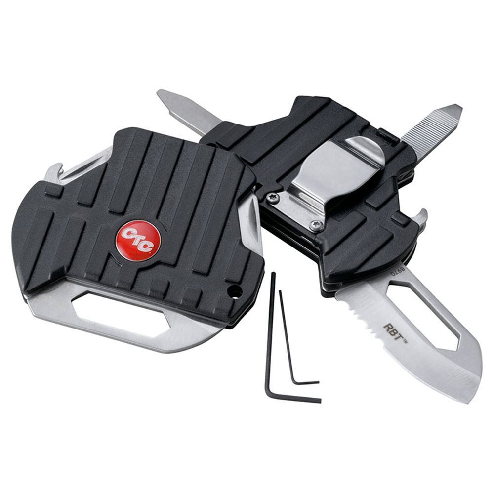 RBT™. In addition to being a secure carry platform for the two standard CTC sight adjustment Allen wrenches, the Range Bag Tool (RBT™) is a shooters utility pocket tool designed by Glenn Klecker. It has a 1.775" high carbon stainless steel blade with a Combined Razor-Sharp & Triple-Point™ Serrated edge, fold-out screwdriver blades, both flat and Phillips, plus a bottle opener. The two CTC Allen wrenches are securely held in slots between the stainless steel InterFrame and Zytel® scales. A removable stainless steel pocket/gear clip is included.