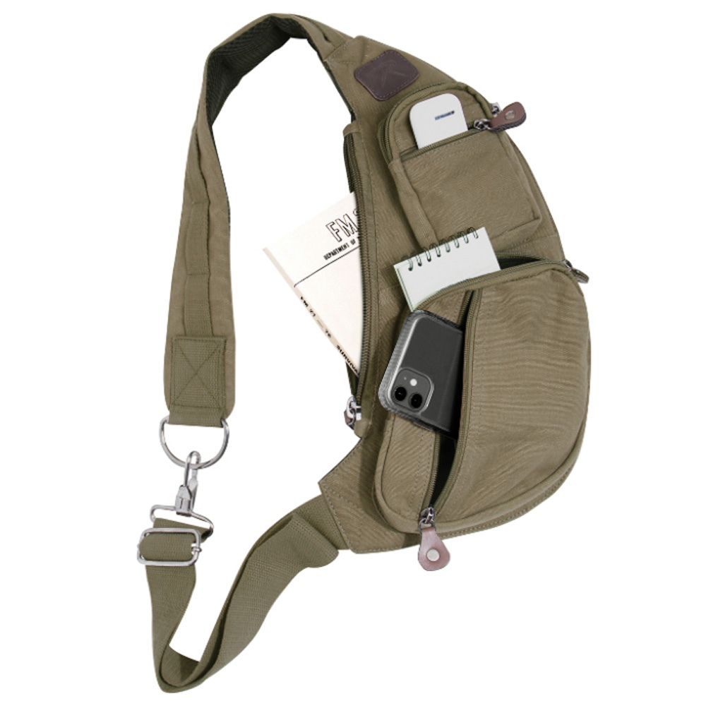 Take On Every Journey In Style With The Crossbody Canvas Sling Bag – A Compact Yet Powerful Pack Built For Everyday Adventures. Crafted From Heavyweight Canvas And Accented With Leather Details, This Bag Features An Ergonomic Design That Naturally Fits Your Body. The Spacious Interior Includes Two Internal Zipper Pockets And Five Exterior Pockets For Maximum Organization. A Rear Zipper Pocket Keeps Documents And Cash Secure, While The Adjustable 47" Strap With Mesh Padding Offers All-Day Comfort. Perfect For Urban Explorers, Cyclists, And Weekend Warriors.