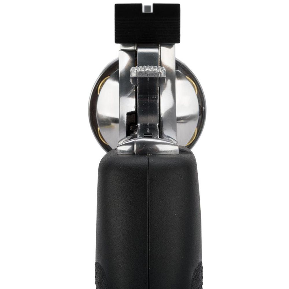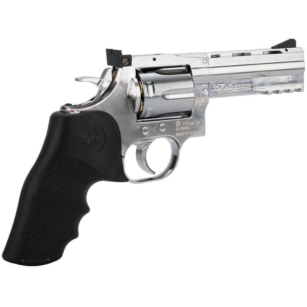 This Dan Wesson 715 pellet gun is a meticulous recreation of the notorious .357 magnum revolver. It imitates the real steel gun down to the smallest details, like clockwise cylinder rotation and a forward cylinder latch. The medium-sized 4” barrel strikes a perfect balance between power and agility. It draws fast and hits hard. This pellet model features a distinct advantage over its BB and airsoft counterparts—rear loading cartridges that do not have to be removed from the cylinder to be reloaded. Six shells and a speedloader are included with the gun.