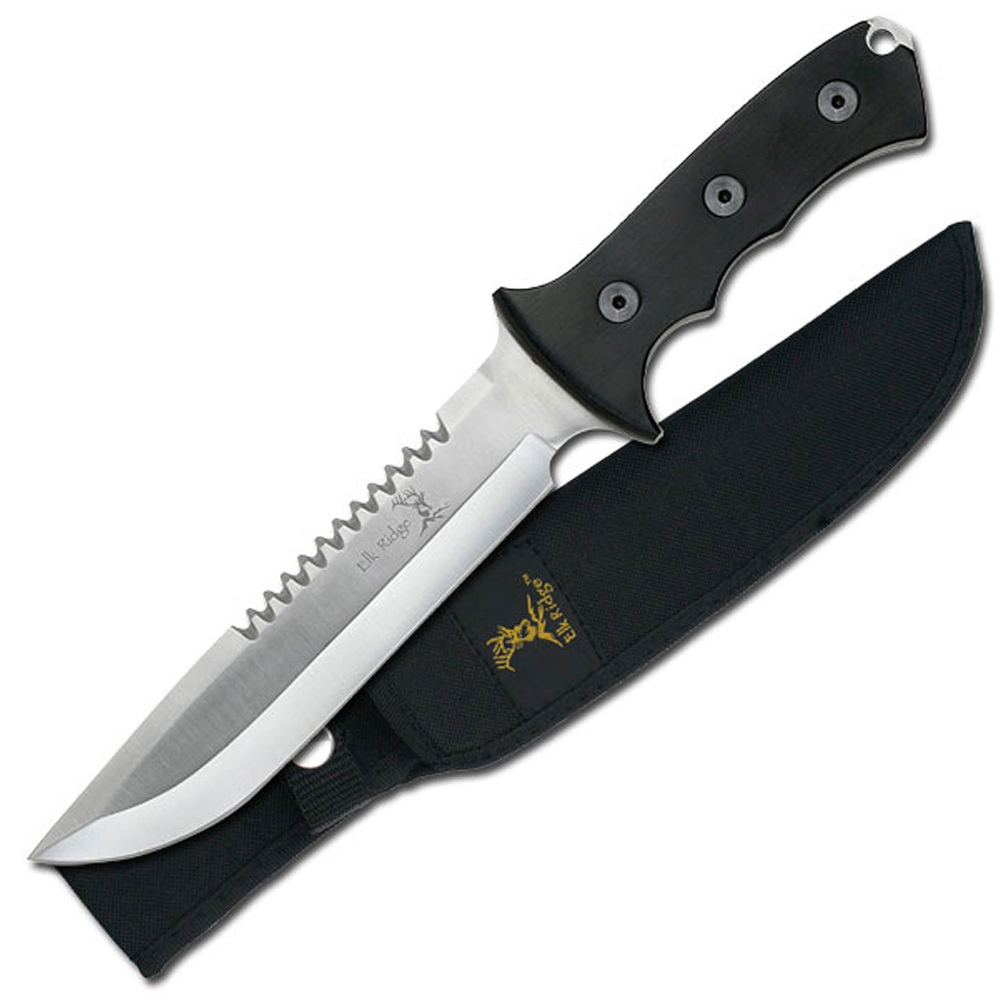 Introducing the Elk Ridge Drop Point Fixed Blade Knife, a robust and versatile tool designed for the outdoorsman. This knife features a 7.50" drop point blade made from 3Cr13 stainless steel, providing a fine edge for precision cutting. The full tang construction ensures durability and strength, while the wooden handle with black artwork offers a comfortable and secure grip. Weighing 0.96 lbs. and with an overall length of 12.50", this knife is ideal for hunting and outdoor activities. It comes with a nylon sheath for safe and convenient carry. Whether you're out in the wilderness or preparing your game, the Elk Ridge Drop Point Fixed Blade Knife is a reliable companion.