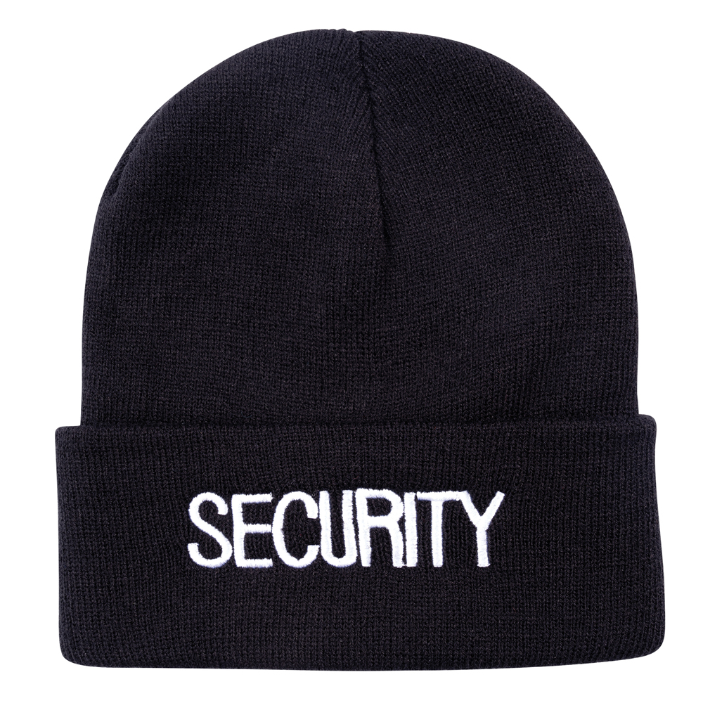 Embroidered Security Watch Caps Features 100% Acrylic Fabric With White Embroidered Lettering. These beanie style watch caps will offer warmth and protection from the extreme cold weather.
