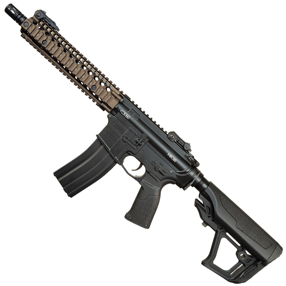 - Aluminum alloy receiver with CNC finishing and Daniel Defense MK18 trademarks
