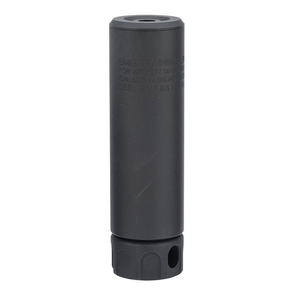 - EMG Training Division trademarks and unique serial number are machined onto the body of the mock suppressor