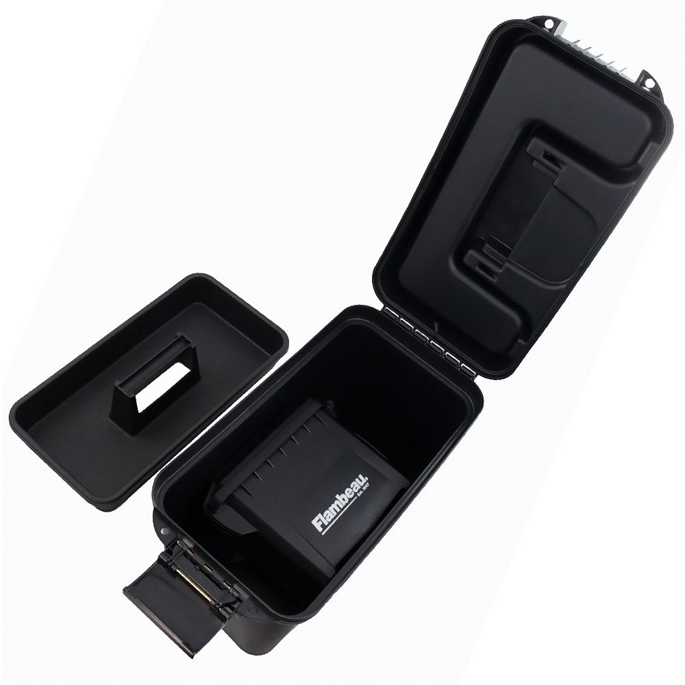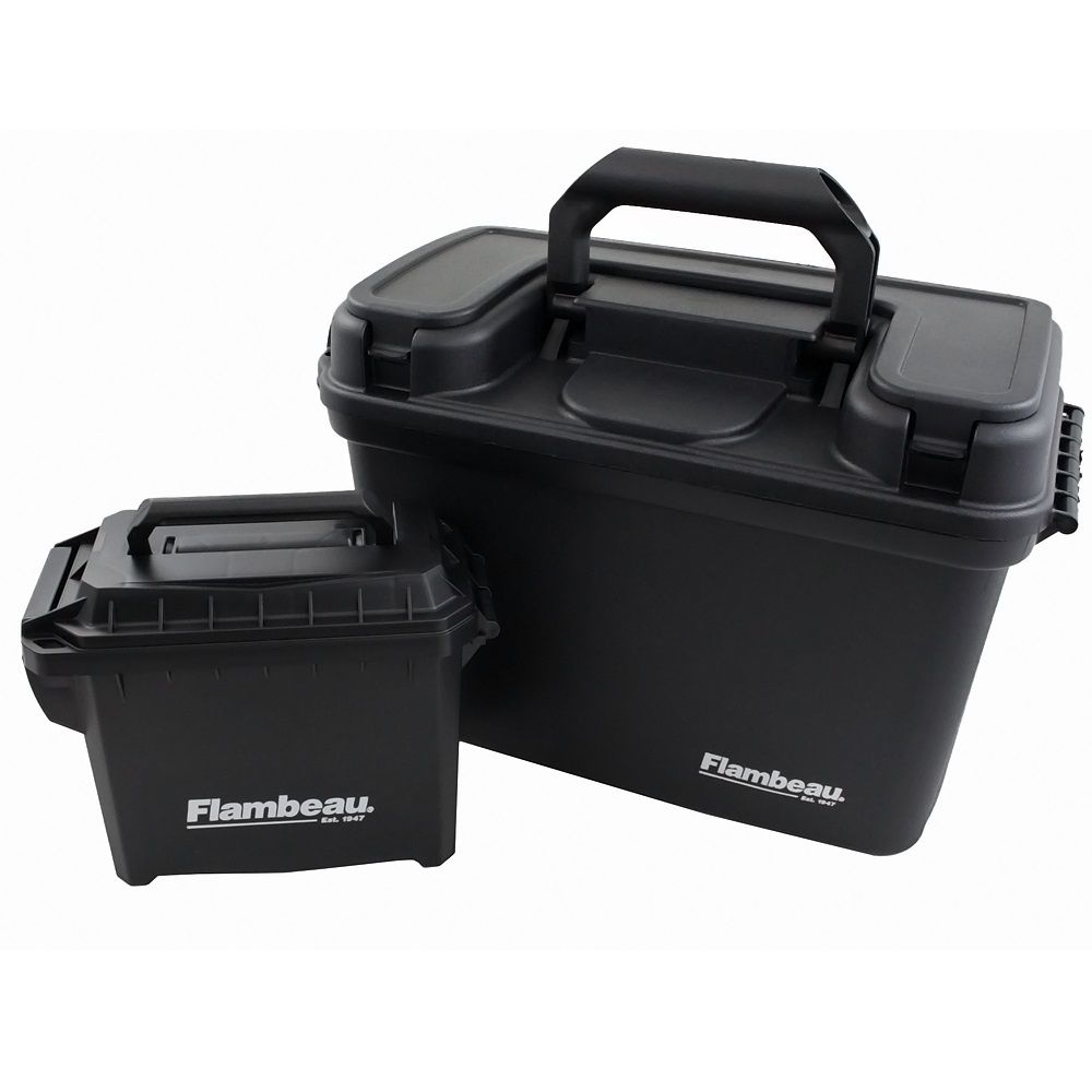 The Flambeau Dry Box/Ammo Can Combo provides secure, dry storage for ammo, tools, and hunting equipment. The ammo can fits snugly into the dry box compartment along with a removable tray, making it easy to separate and organize your gear. Both cases have have water-proof rubber gaskets and easy-access OTC latches that are padlock compatible.