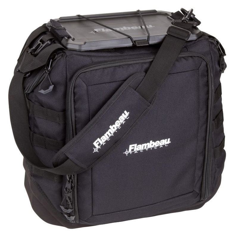 The Flambeau Hexa Range Bag is a mobile pistol armory. This tactical shoulder bag includes two 14” Safe Shot Pistol Cases and two Mini Ammo Cans to store and transport everything you need for a day at the gun range. The bag is constructed from ultra-tough 1260D nylon with two side pockets, exterior MOLLE webbing, and an interior waterproof pouch for gun oil and other liquids. The top has a polymer plate that serves as a work station for loading magazines, cleaning, and maintenance.