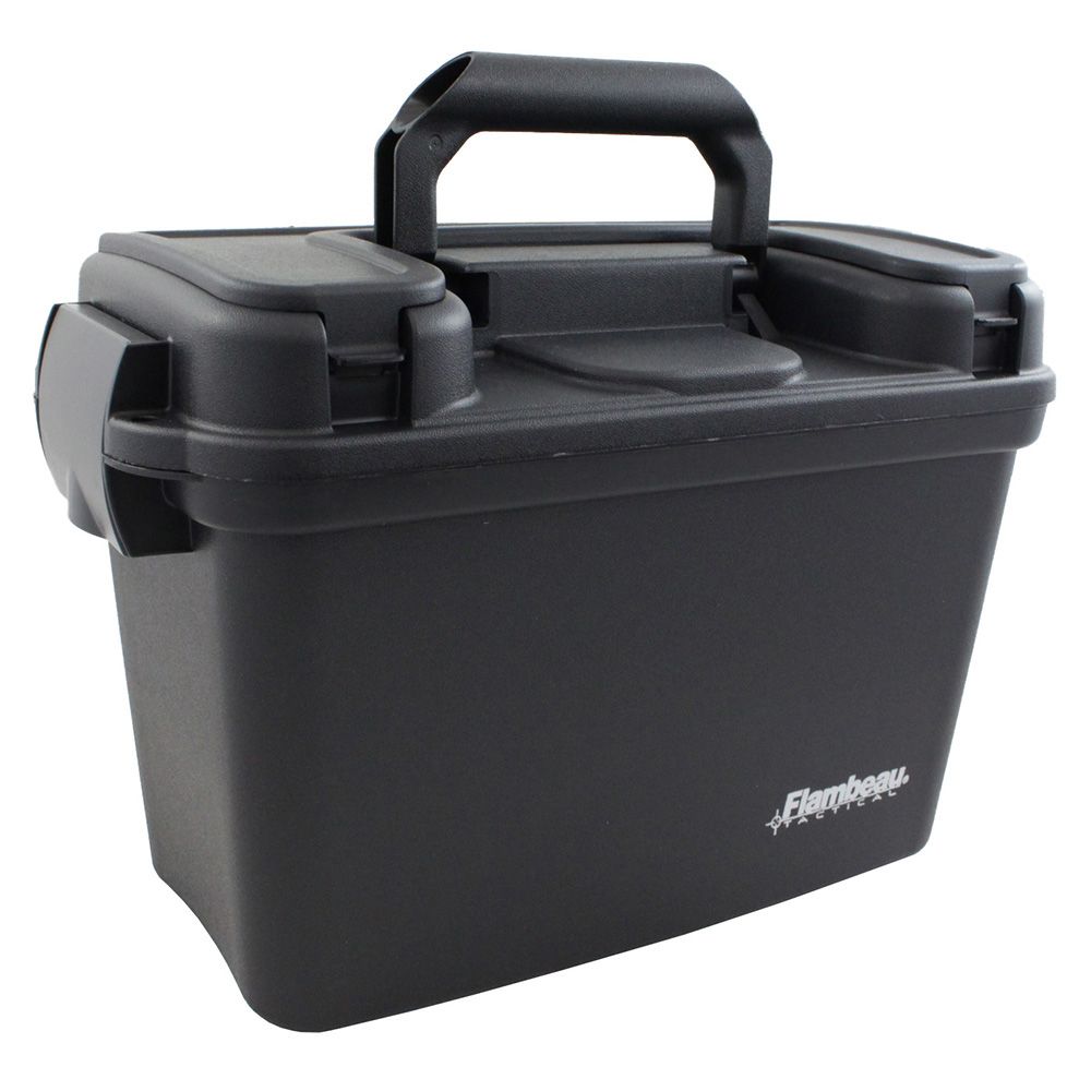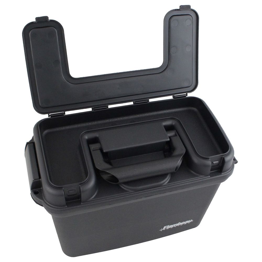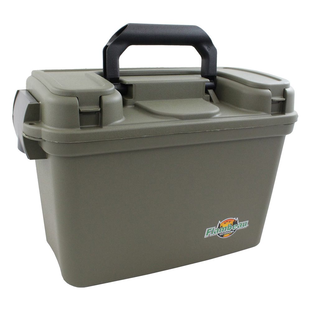 The Flambeau Sportsman’s Dry Box provides waterproof storage for fishing tackle, tools, shooting equipment, and other tactical gear. It has a durable polymer construction with 360-degree rubber water-resistant gasket. This 14” model has a mid-size inner compartment for smaller tools, as well as a removable tray, and a flip-top lid chamber. It has an easy-access OTC latch and is padlock compatible.