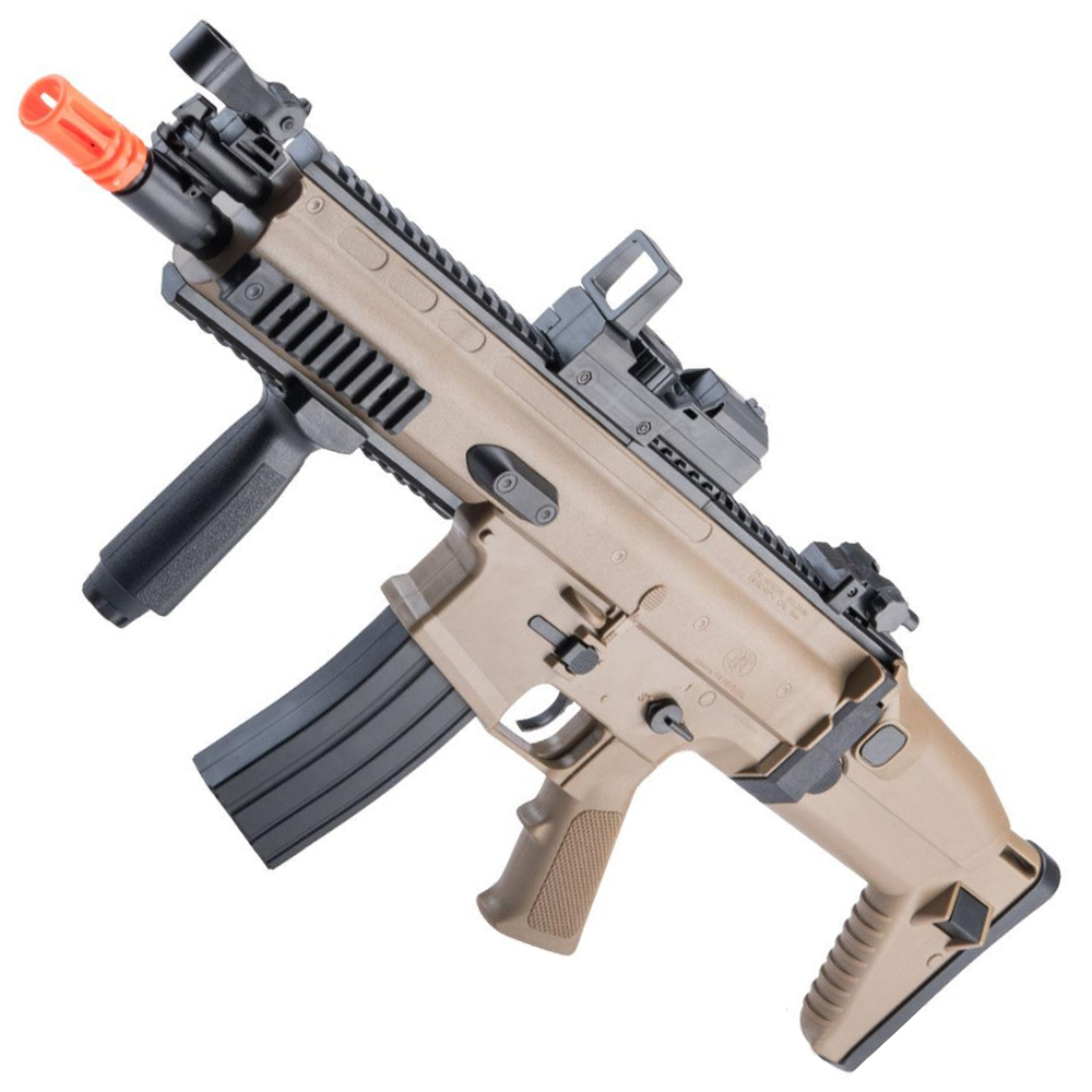 The FN SCAR features ambidextrous controls such as an ambi selector and mag release as well as a reversible charging handle allowing the operator to configure the rifle to their preference. The CNC one piece upper receiver features an uninterrupted Picatinny top rail with two removable side rails and a bottom rail to mount any MIL-STD-1913/Picatinny accessories. The high strength polymer lower receiver helps cut down on the over-all weight of the rifle while still maintaining most of the controls of the already familiar M4/M16 system. The telescoping, folding stock allows the rifle to be fully adjustable for length of pull to accommodate any operator. With the stock folded, the SCAR offers a significantly lower profile than even the M4A1 allowing for easy storage and transportation.