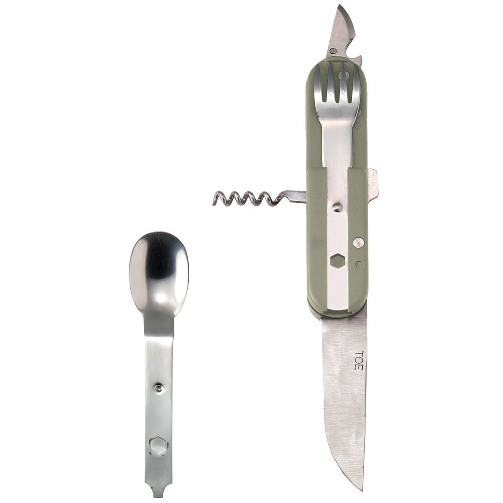 Components: fork, spoon, knife, corkscrew, can opener