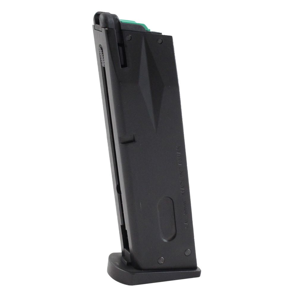 Keep your G&G GPM92 airsoft pistol locked and loaded with this spare magazine. It has been internally upgraded with G&G’s latest safety technology. Fuel efficiency has been improved with a metal micro-filter that stops any liquidized green gas from passing through the gun. A collapsible safety valve has also been installed in case the gas tank becomes over-pressurized. It can hold up to 27 rounds.