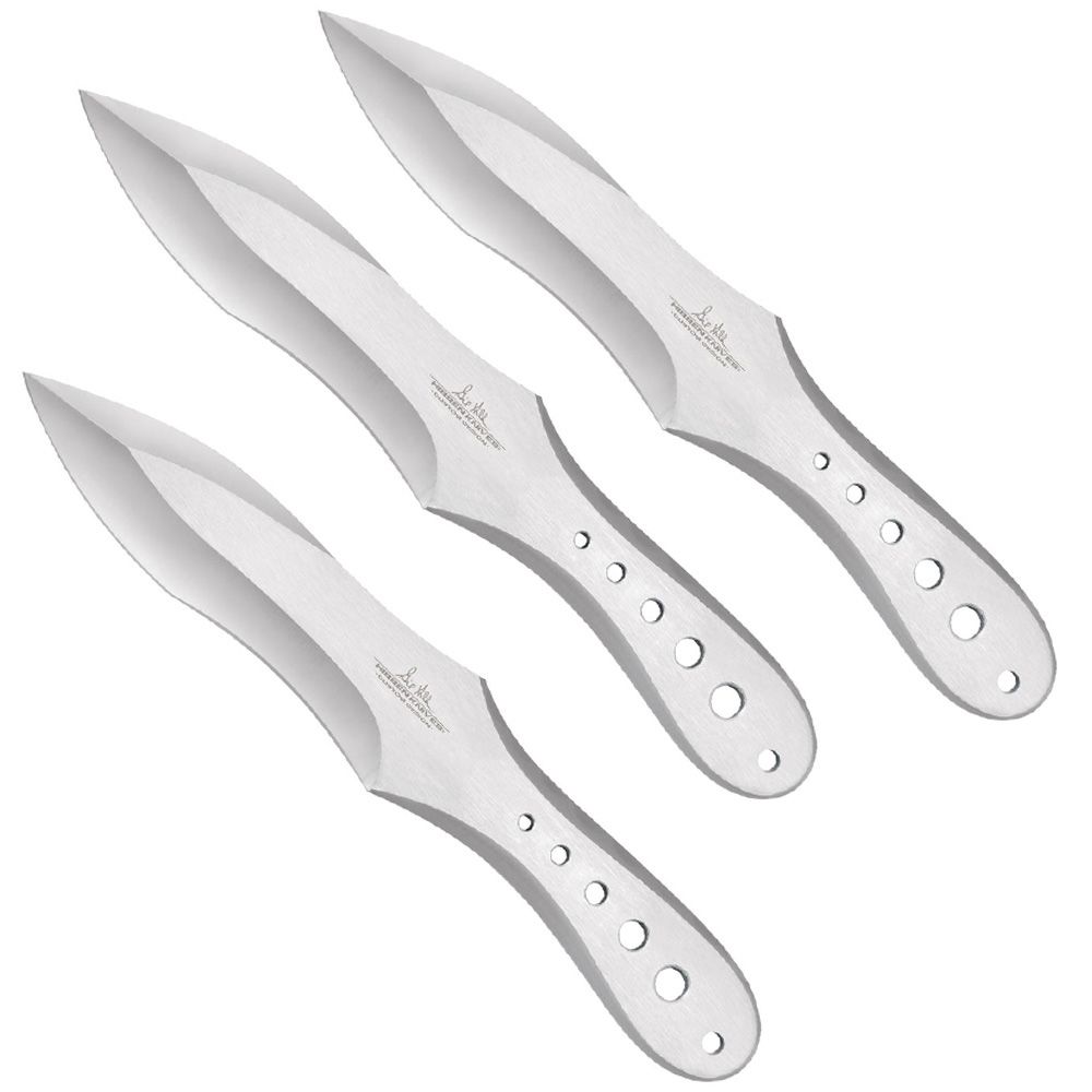 Designed by Gil Hibben, who is a master knife maker, an avid knife thrower, and author of the Hibben knife-throwing guide, the Generation X is Gil's updated design of his original throwers. Constructed with one-piece of tempered AUS-6 stainless steel, these throwers feature an ergonomic handle design that guides the hand into the same consistent and accurate release each time they thrown. Includes a black nylon belt sheath that holds all three throwers and features a reinforced liner and a color Hibben Knives logo patch.