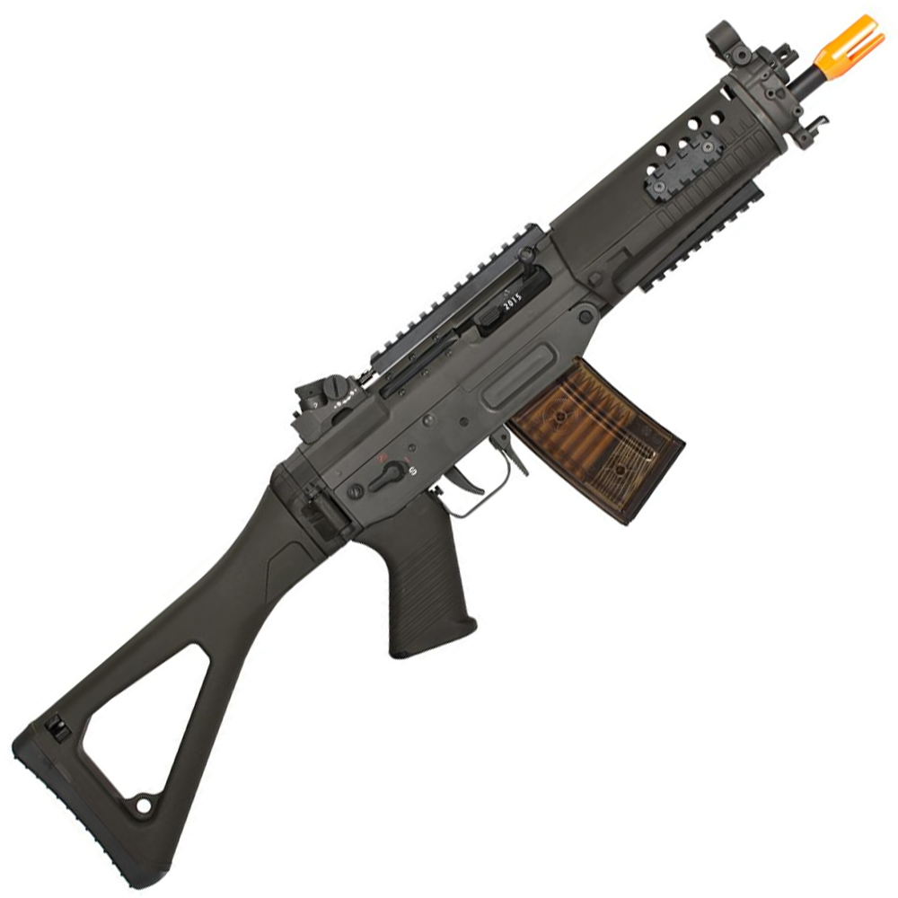 This rifle uses a full metal receiver to give a realistic weight while having a polymer handguard and folding rear stock. To add more realism to the rifle it features dummy bolt cycles with a functioning bolt release. It has ambidextrous fire selectors and has a folding trigger guard so you can easily use the rifle while wearing bulky gloves.
