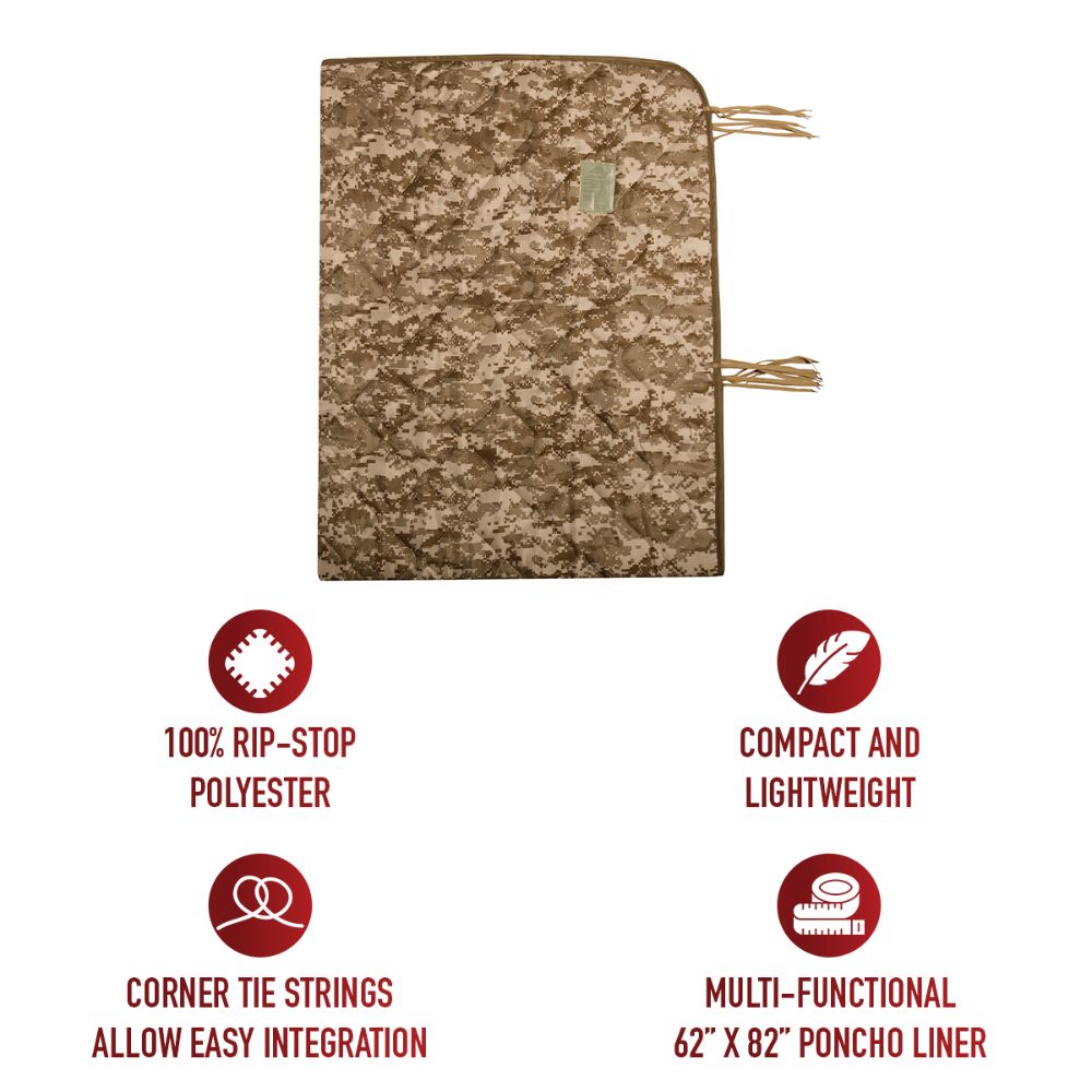Discover Unmatched Warmth and Versatility with Ultra Force's Poncho Liner, Also Known as the Woobie. This essential Outdoor Companion is designed with Ties in Each Corner, making it easy to attach to your Poncho for added insulation against the cold. Its Quilted Rip-Stop Construction not only provides a Soft Touch but also ensures Long-Lasting Durability, perfect for all your Adventures.