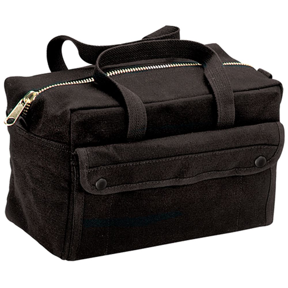 G.I. Type Mechanics Tool Bag features a heavyweight cotton canvas with 2 outside snap pockets, 8 inside tool organizer pockets and a durable brass zipper. The mechanics tool bag measures approximately 11" x 7" x 6".